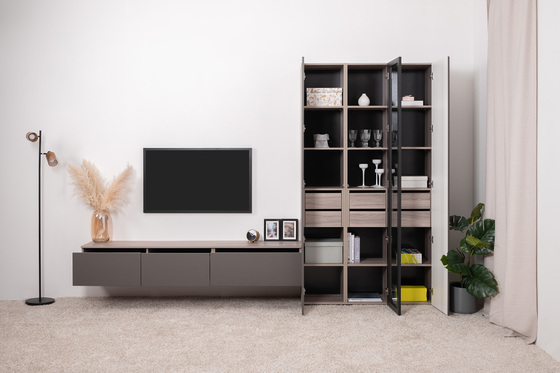 Тумба под ТВ Роквуд 16.54.01 Эмили Блаш U9135, Графит мягкая шагрень 2998 ПВХ, напольная/навесная установка