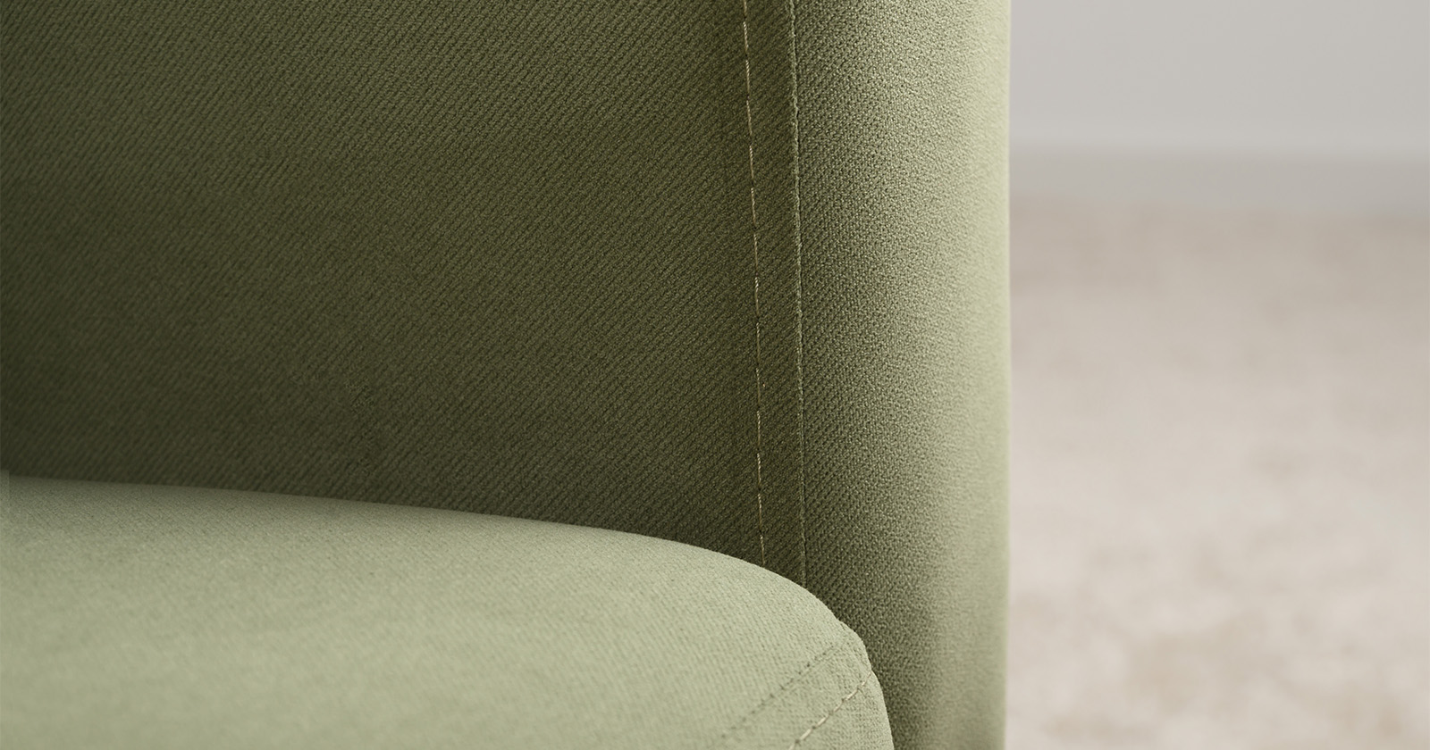 Металлические опоры плавно переходят в декоративный элемент подлокотника. Декоративная утяжка по приспинным подушкам