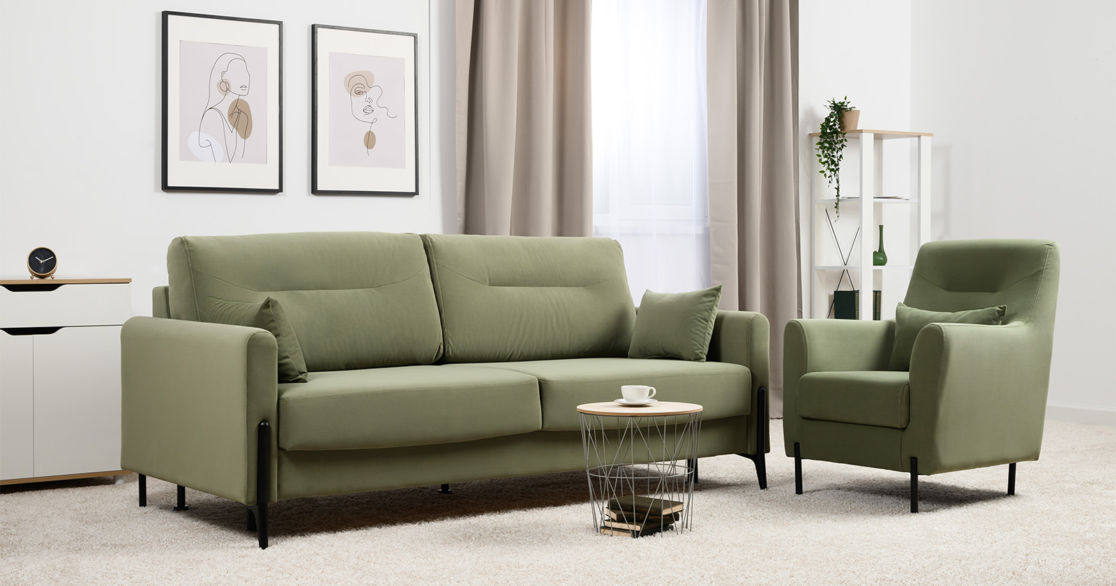 Барселона - современный диван, стиль которого удачно подчеркнут элегантными металлическими опорами.