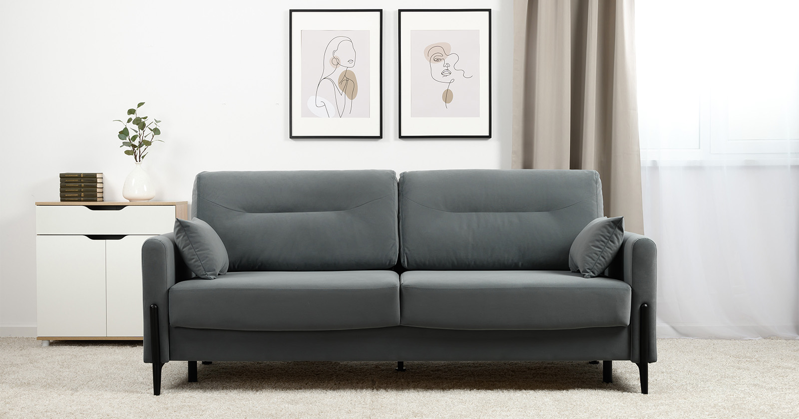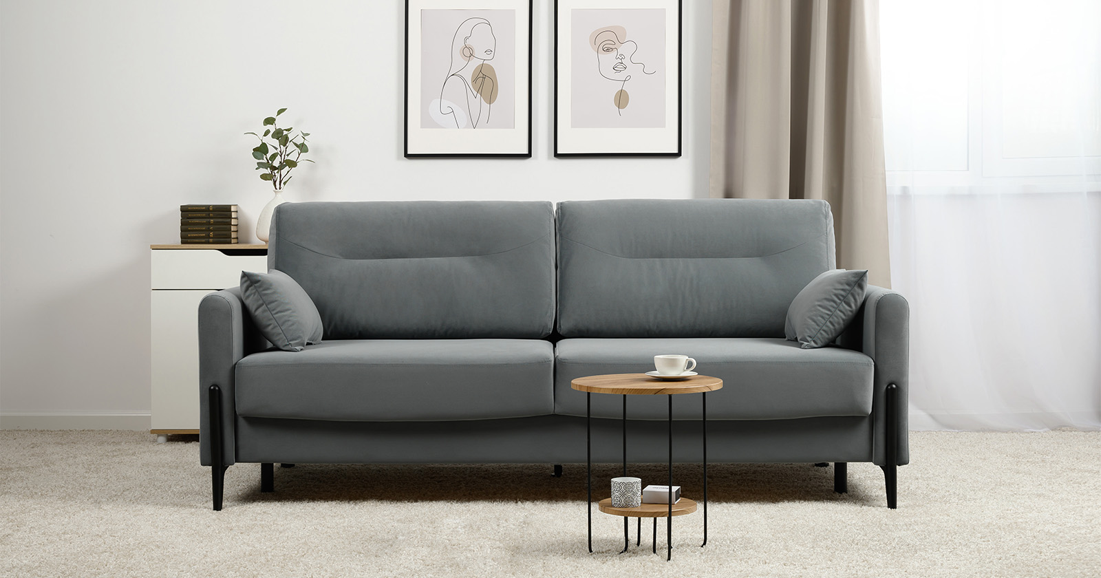Барселона - современный диван, стиль которого удачно подчеркнут элегантными металлическими опорами.