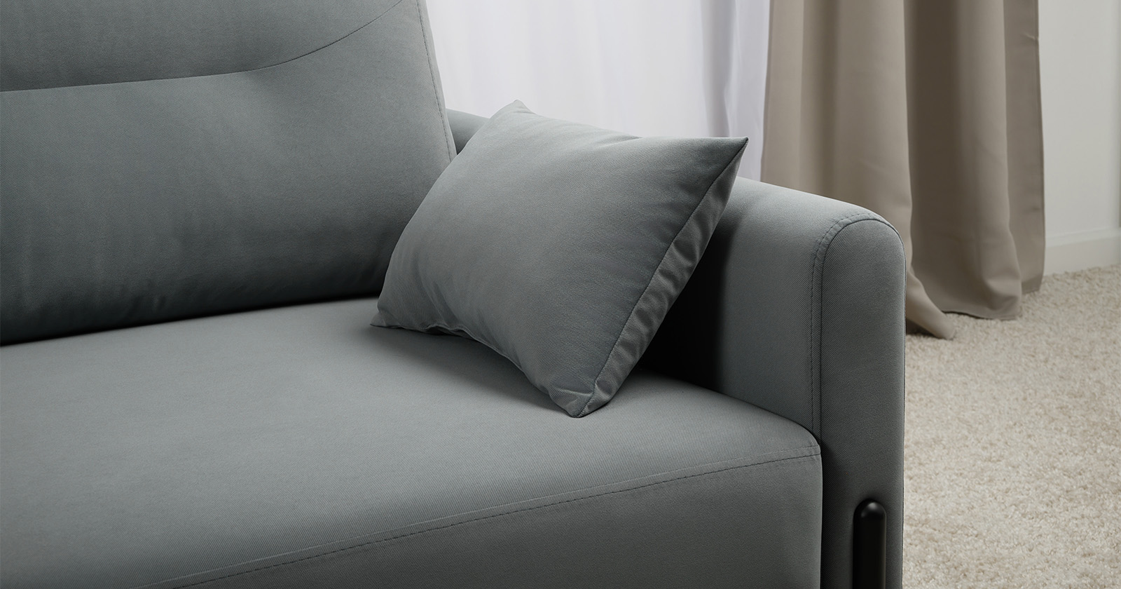 Металлические опоры плавно переходят в декоративный элемент подлокотника. Декоративная утяжка по приспинным подушкам