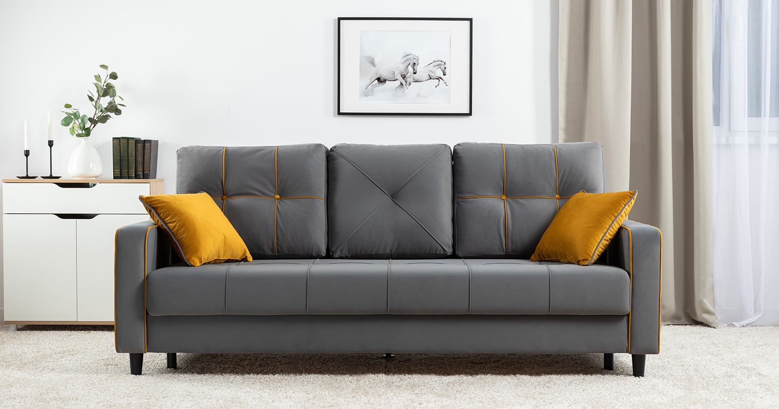 Диван-кровать прямой Черри ТД 287 велюр Irida 21 серый, Эвита умбер горчичный