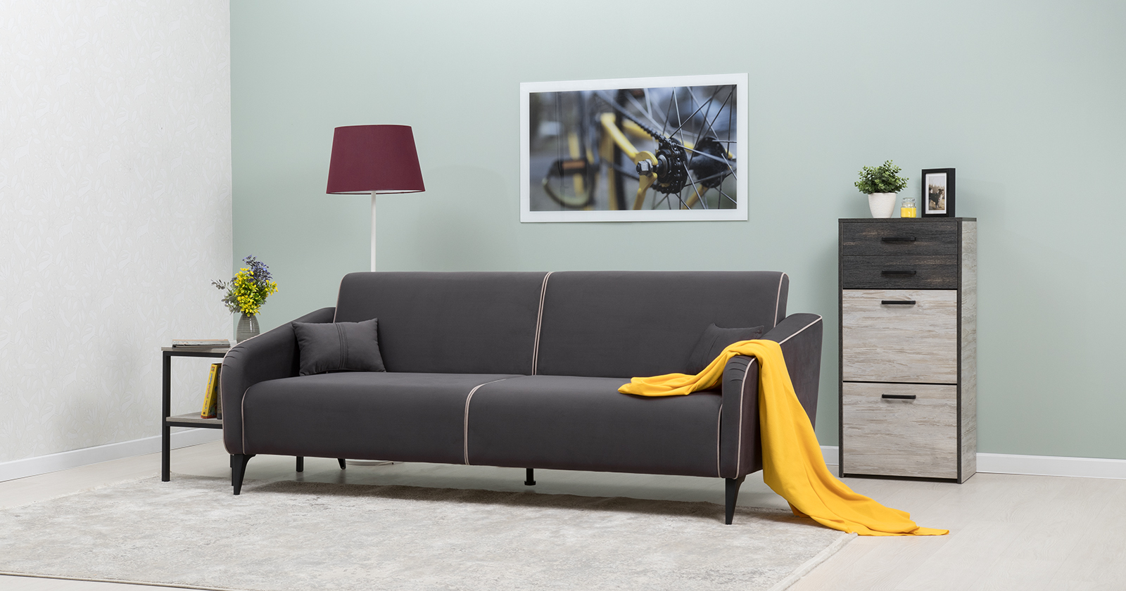 Диван-кровать прямой Ноэль ТД 447 велюр темно-серый, светлый кварцевый серый