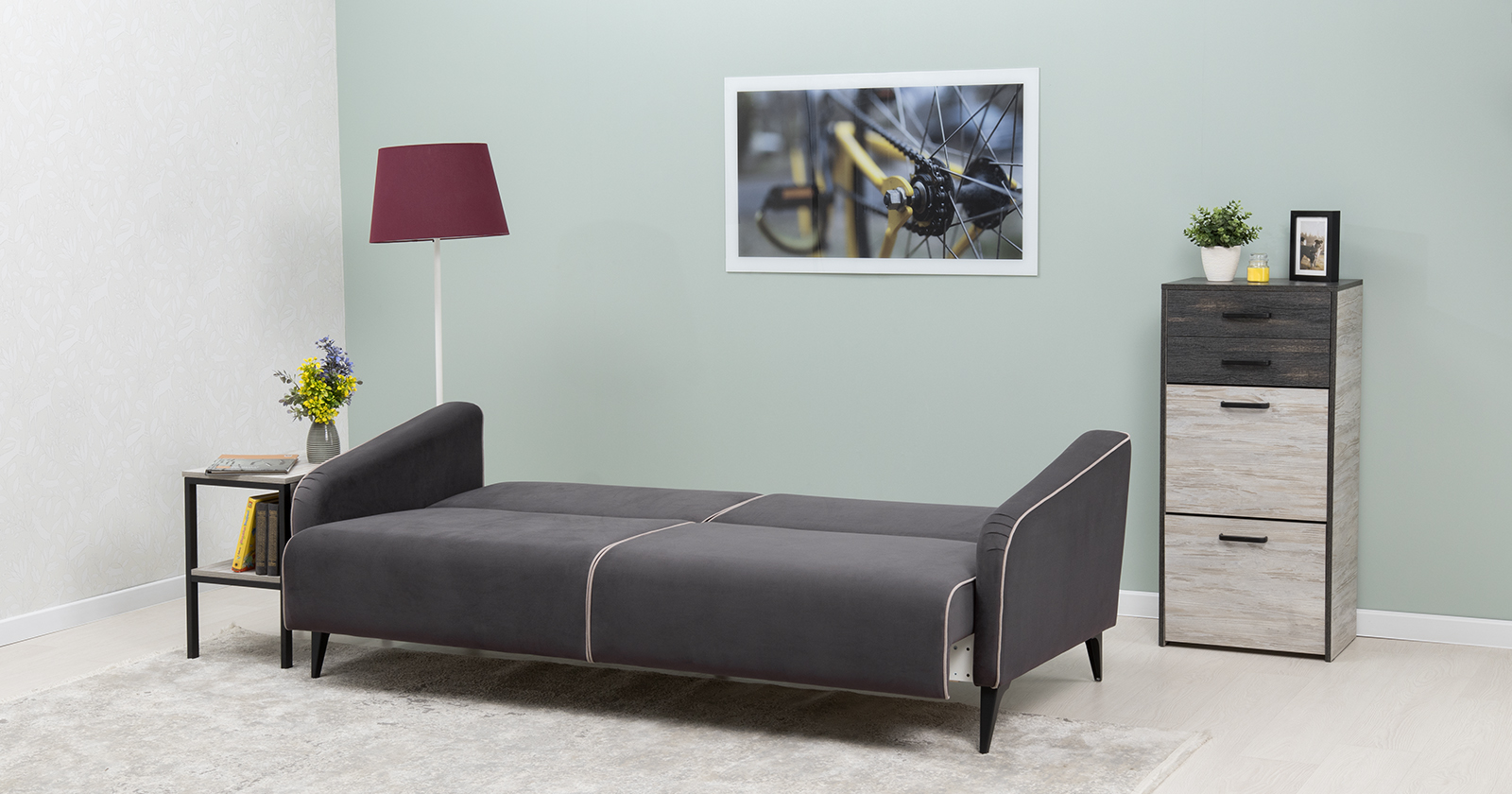 Стильный компактный диван-книжка для современных интерьеров. Дополнит гостиную, сэкономит место в гостевой, сделает уютным и функциональным кабинет или офис.