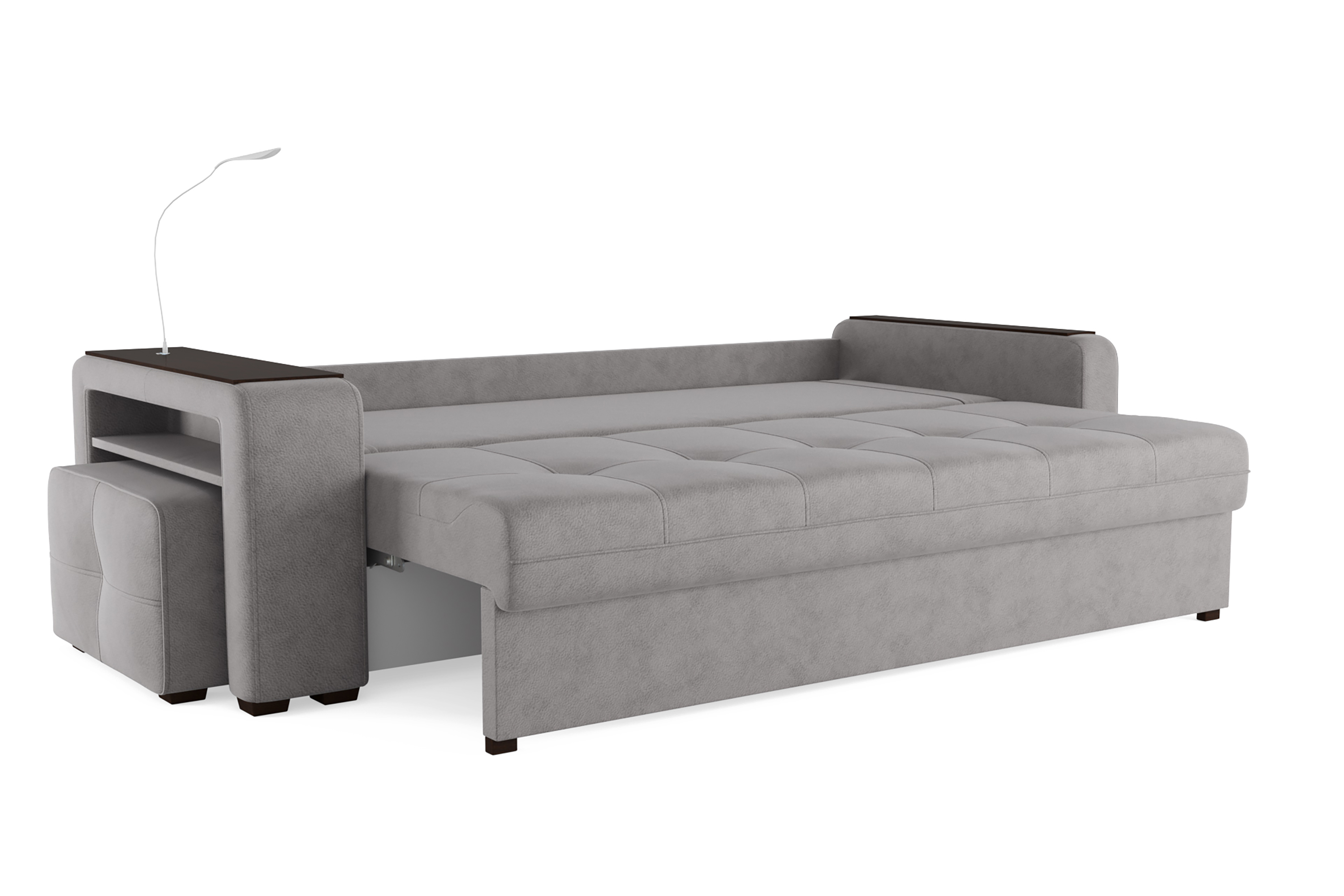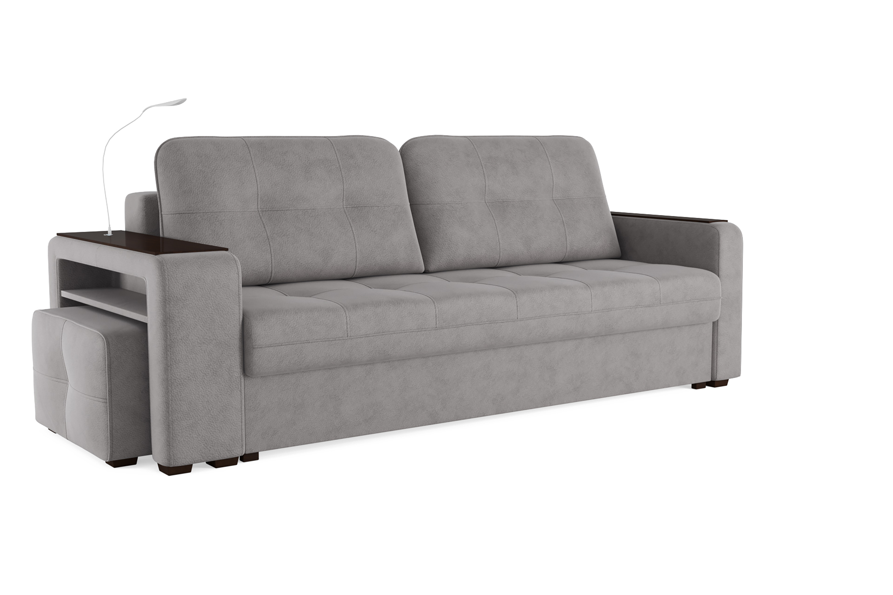 Диван «SMART 4» — это не просто мягкая мебель, а один из ключевых элементов интерьера с обширным функционалом, где эстетика тесно соседствует с комфортом и эргономичностью. Одна боковина оснащена карманом для хранения мелочей и гаджетов, другая боковина совмещает одновременно: рабочую поверхность, за счет широкой накладки, двойной usb - порт и портативную лампу точечного света, которая входит в комплект. Добавить контрастных деталей в интерьер поможет пуф, интегрированный в подлокотник. Этот вариант для современных людей, которые ценят комфорт и удобство отдыха. Мягкое сиденье с легкостью трансформируется в просторное спальное место, на котором смогут утроиться ваши гости. Стильный и уютный, он станет отличным решением, если вы ищите не только красоту, но и комфорт.
