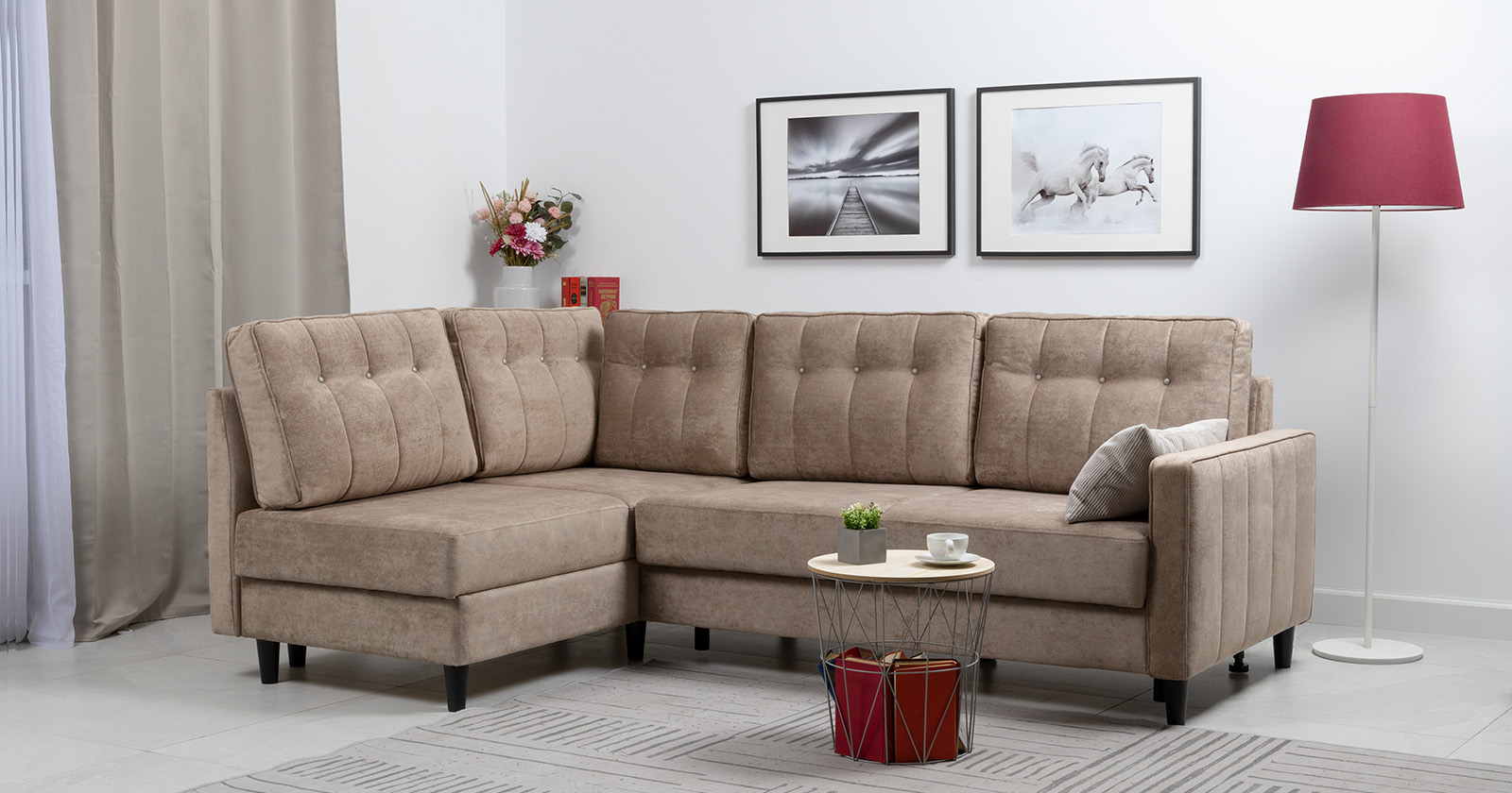 Диван-кровать угловой Арно ТД 565 велюр Лаки 04 песочный, Vertical 910 молочно-серый, сборка на любую сторону