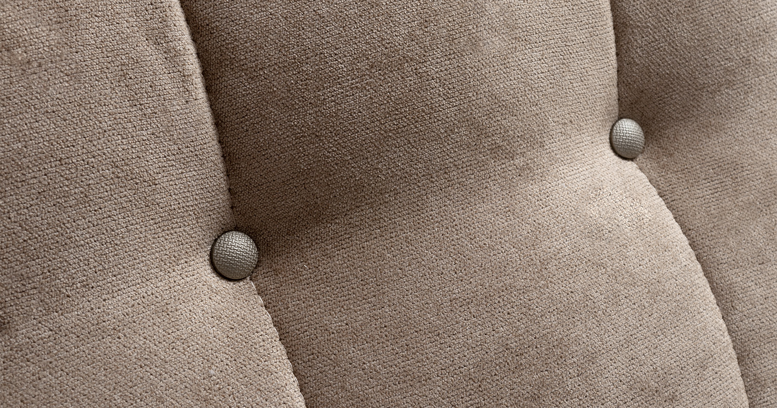 Подушки имеют трапециевидную форму, с утолщением к низу для комфорта посадки. Кант по всему периметру подушек, декоративные утяжки металлическими пуговицами, вертикальная стежка.