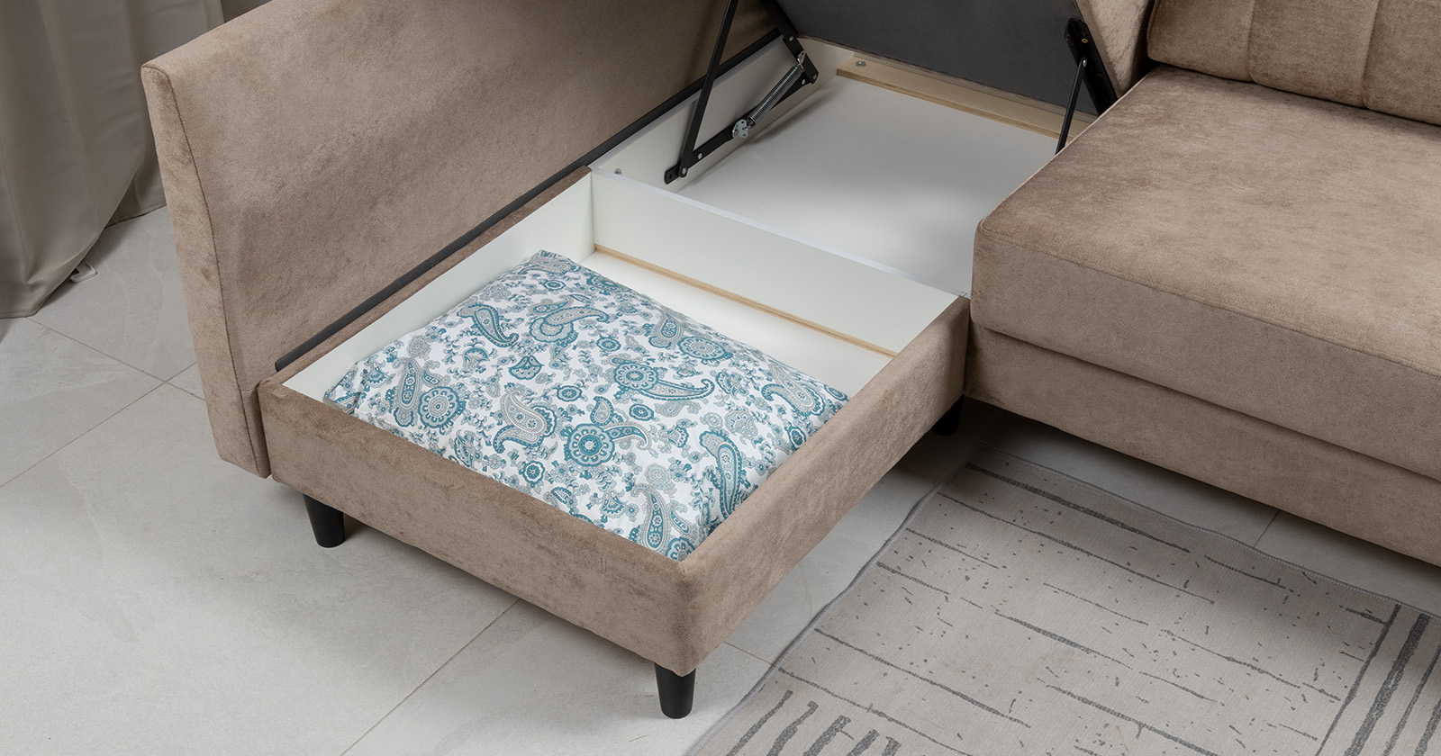 Современный функциональный угловой диван – отличное решение для вечернего отдыха в кругу семьи. Максимальная функциональность при минимальных габаритах: отдых сидя и релакс, широкое спальное место, два бельевых ящика. Может быть дополнен кресло Арно.