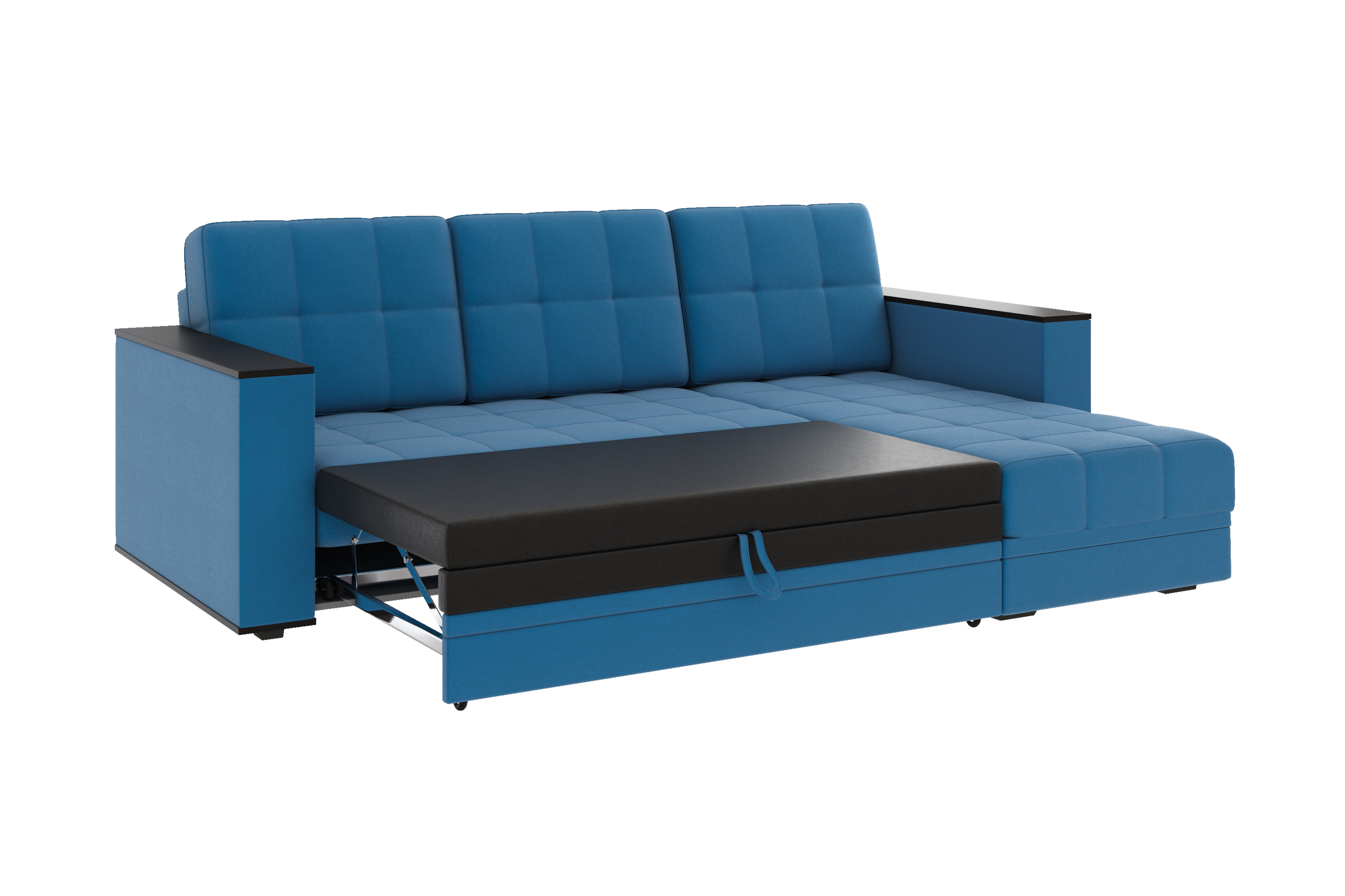 Диван-кровать угловой Атлант велюр синий со спальным местом (сборка на любую сторону)