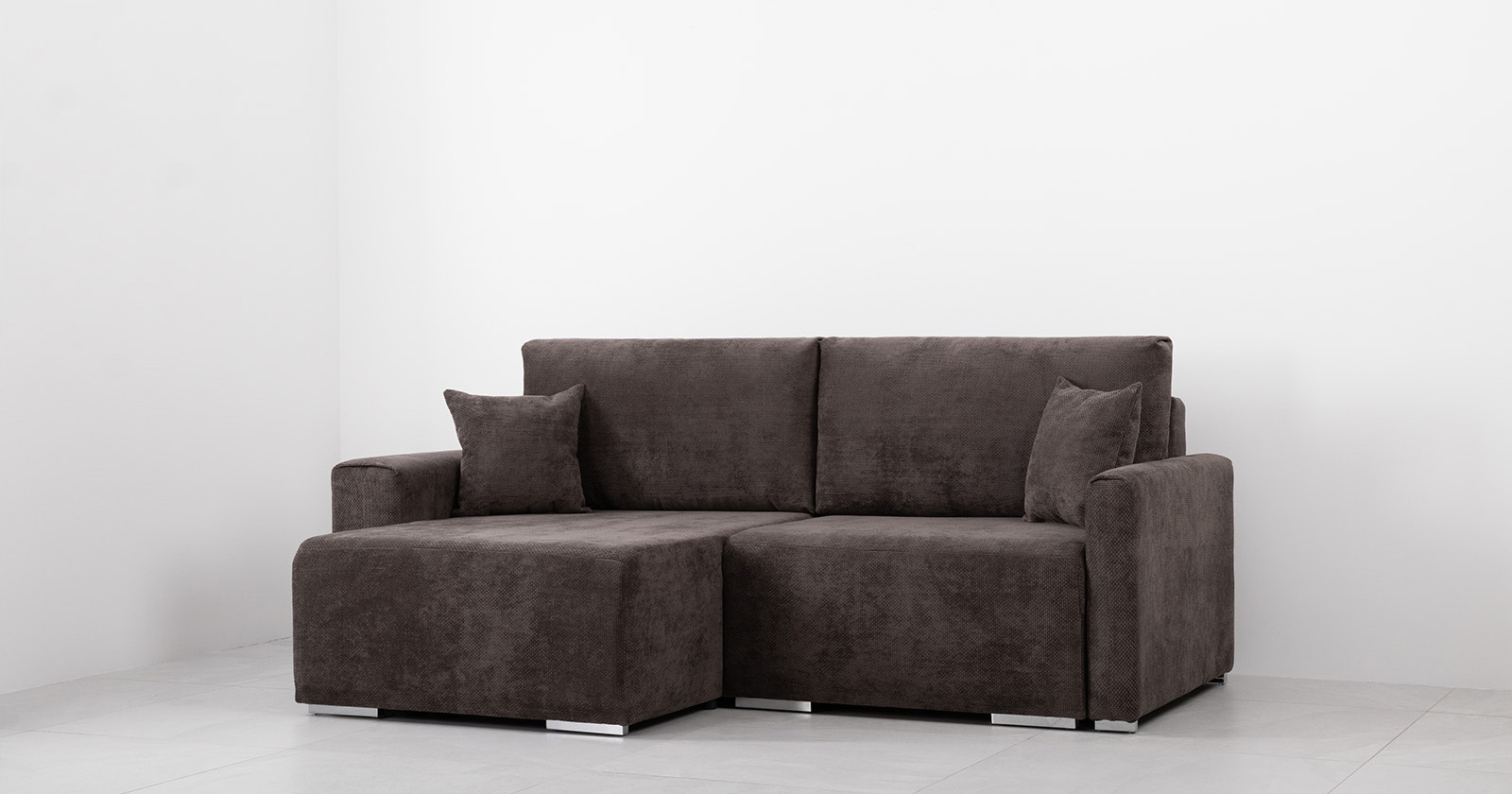 Диван-кровать угловой Оксфорд 711 композиция 1, шенилл Muza 06 темно-коричневый, модульная система, сборка на любую сторону