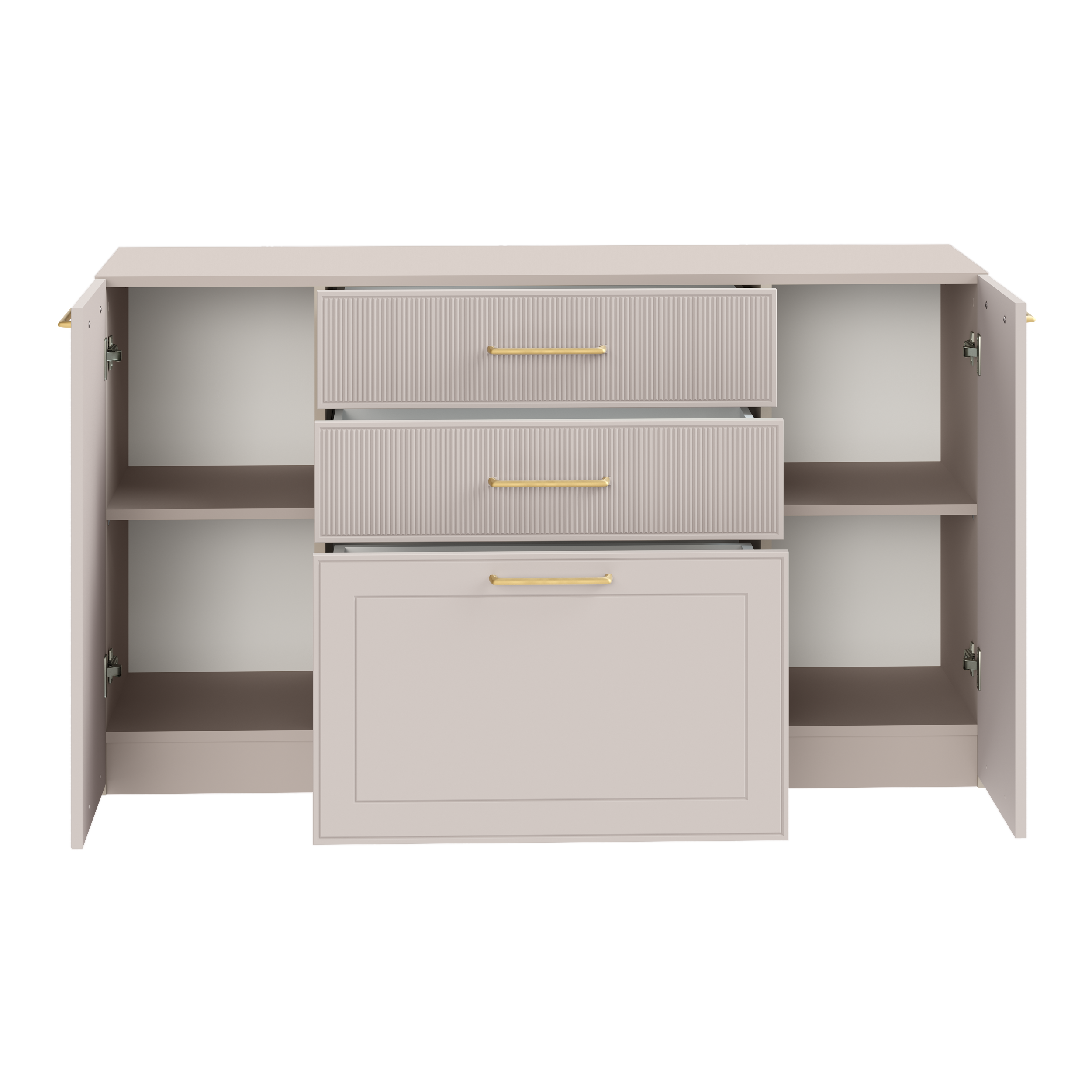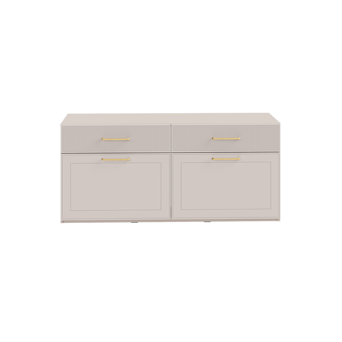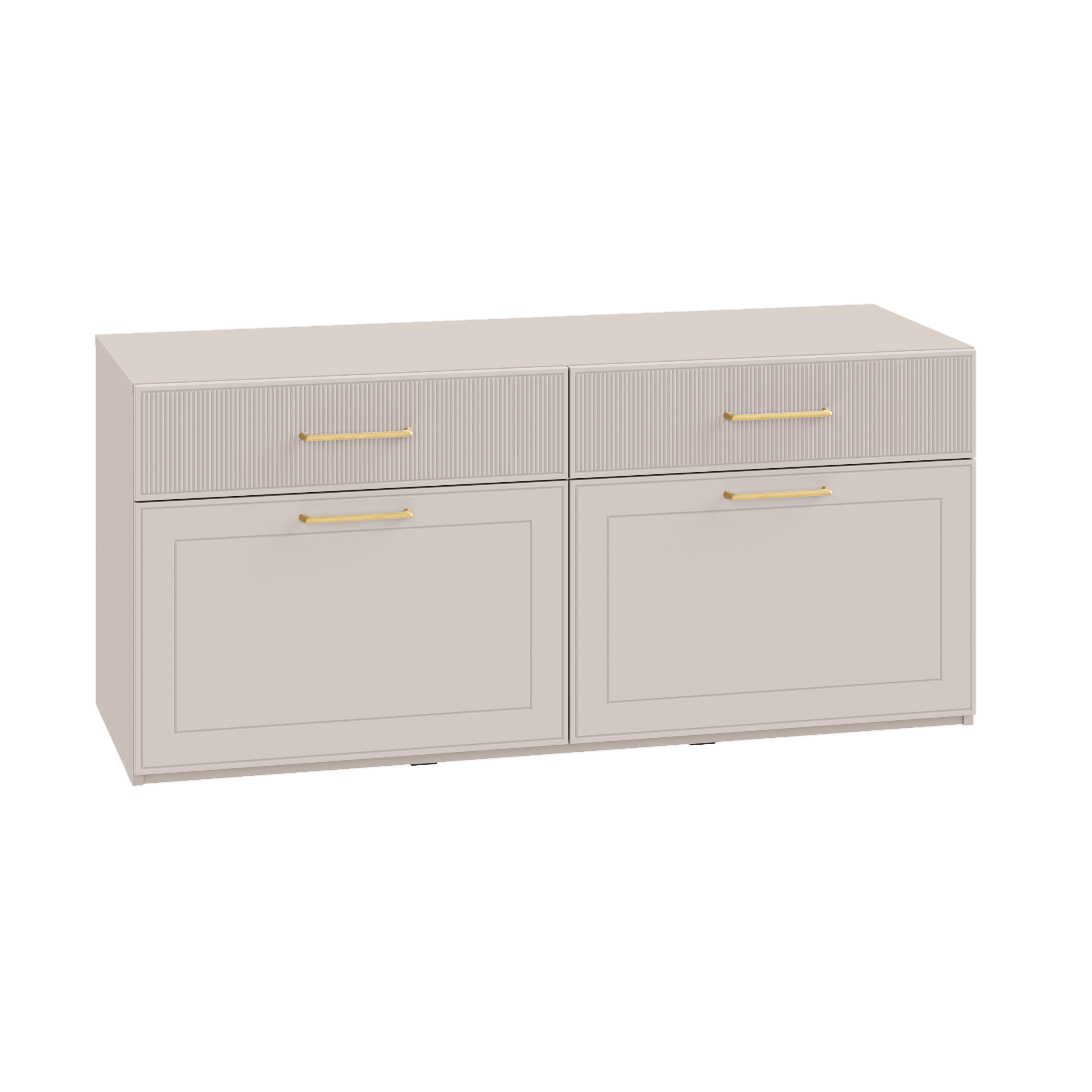 Гостиная Ричфорд композиция 2 с карнизами, кашемир 5981 BS, моно керамика D166-2 ПВХ, белый PE шагрень (собирается на любую сторону)