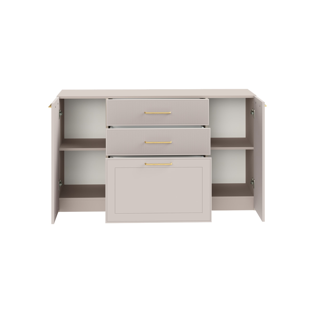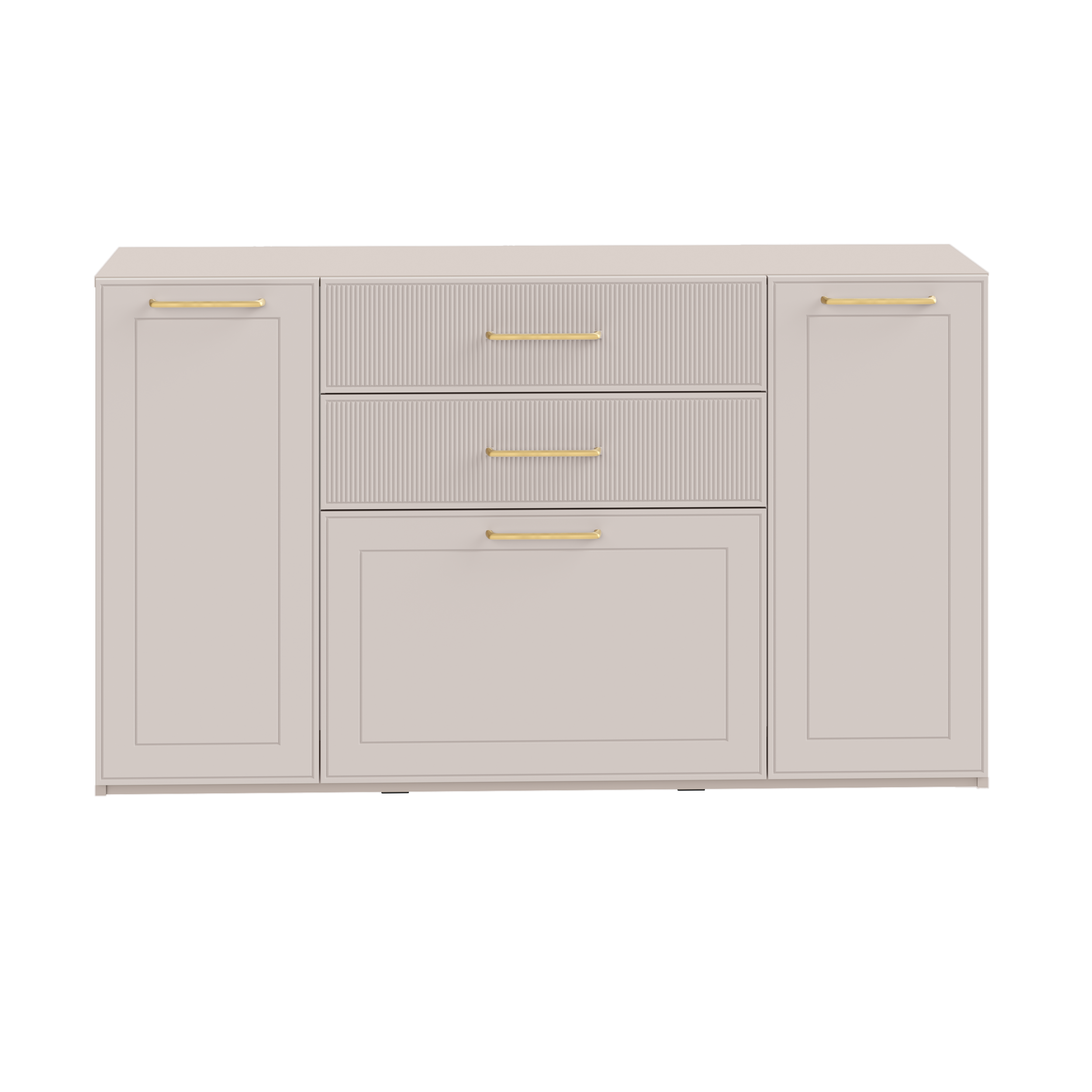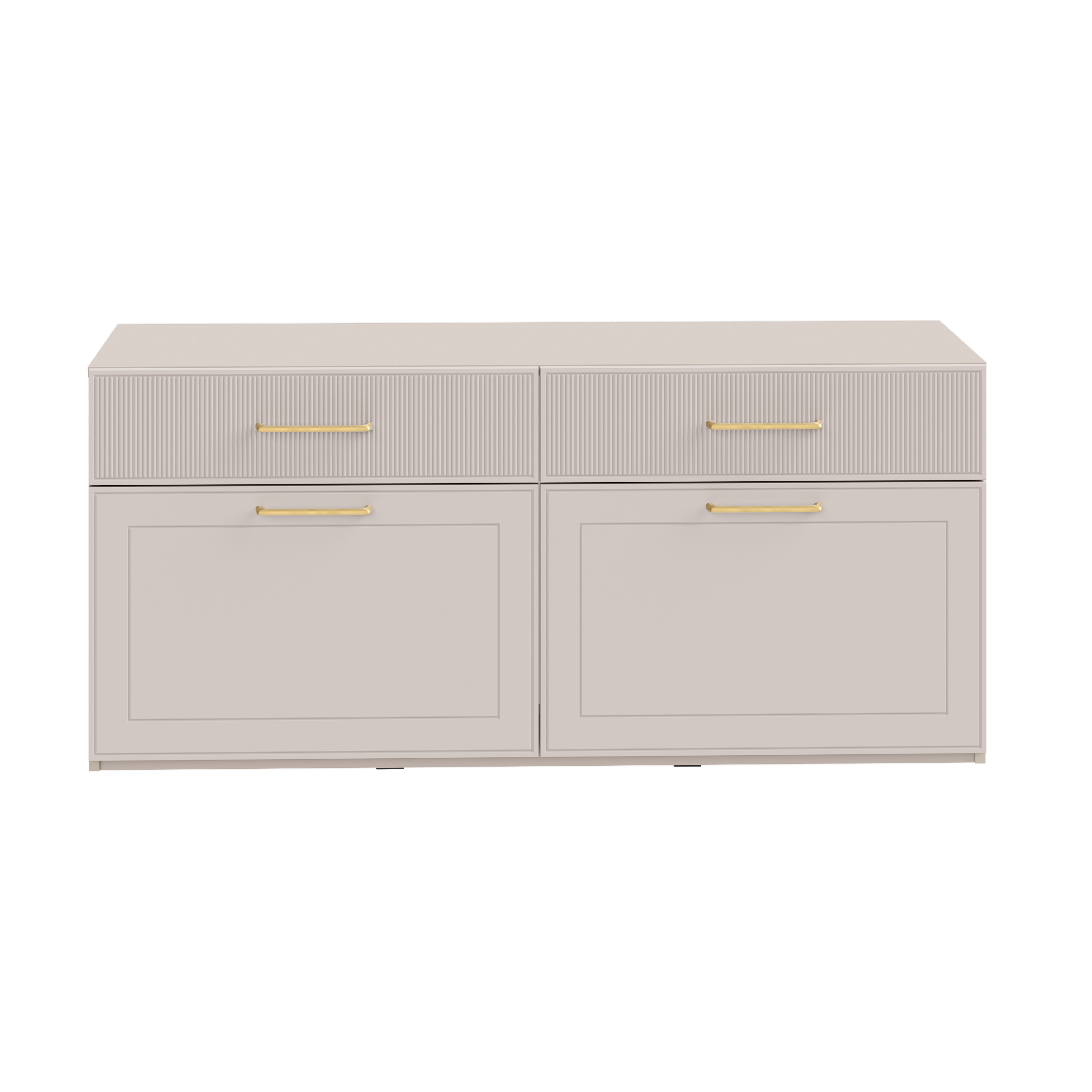 Гостиная Ричфорд композиция 2 с карнизами, кашемир 5981 BS, моно керамика D166-2 ПВХ, белый PE шагрень (собирается на любую сторону)