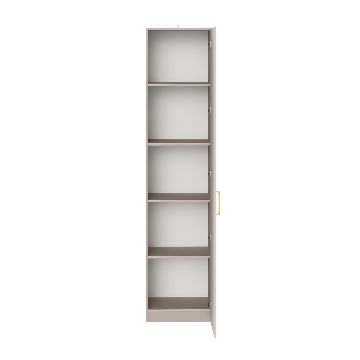 Петли с доводчиками, полное выдвижение ящиков, выдвижная штанга в шкафу для одежды и съемные полки делают использование максимально комфортным.