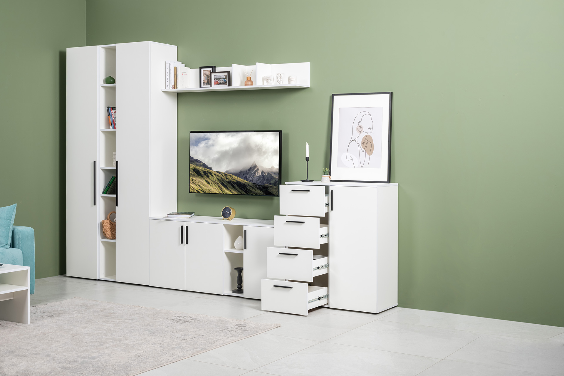 Тумба под ТВ Эйр 16.55 белый PE шагрень, собирается на любую сторону