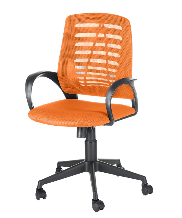 Кресло на колесах Ирис люкс обивка ткань-сетка TW сидушка оранж, спинка оранж, подлокотники пластик, крестовина пластик, механизм качания