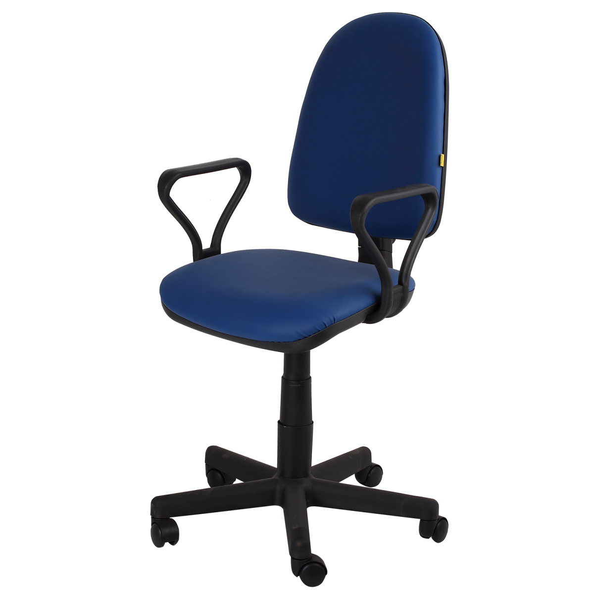 Кресло Престиж Самба обивка кожзам синий, подлокотники пластик, крестовина пластик, механизм отклонения спинки