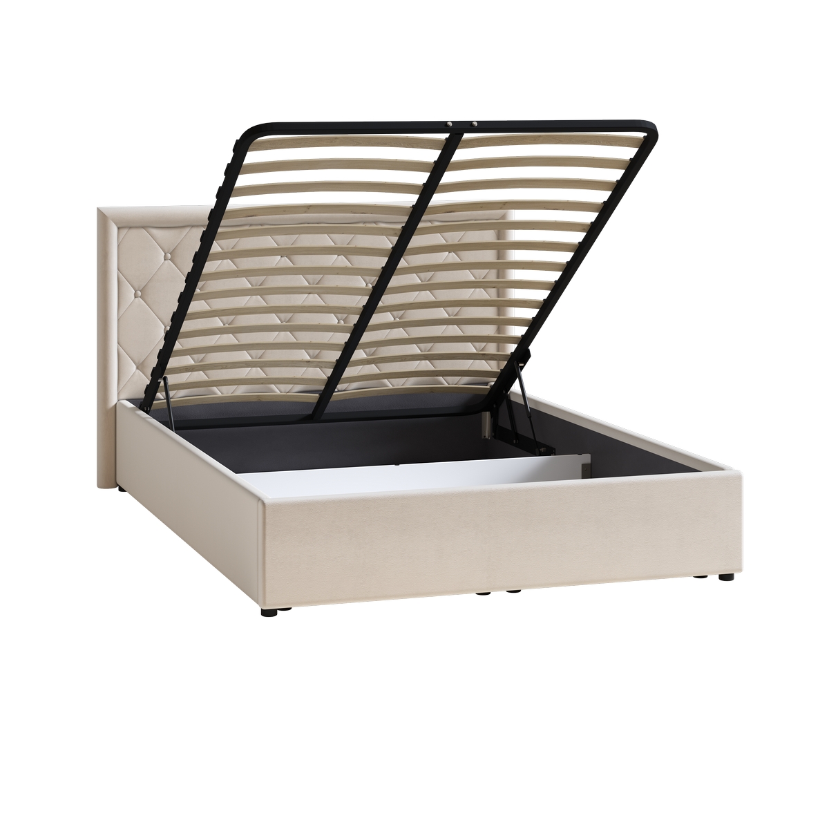 Кровать Марион 140 велюр OCEAN 002 бежевый с ортопедическим основанием и подъемным механизмом (спальное место 140 х 200)