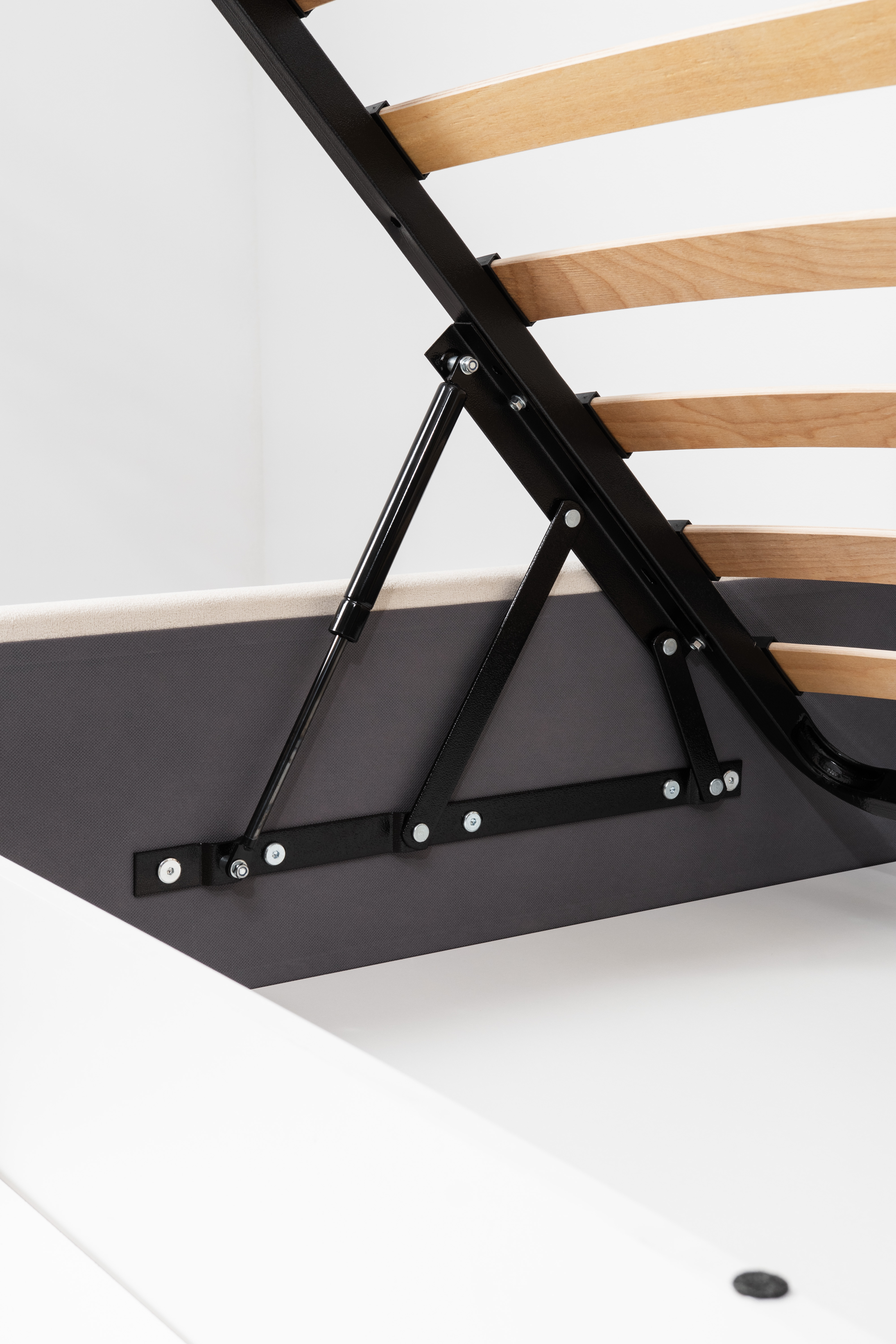 Кровать Линда 140 с ортопедическим основанием и подъемным механизмом, дуб сонома, эко 100 кожзам гранд белый
