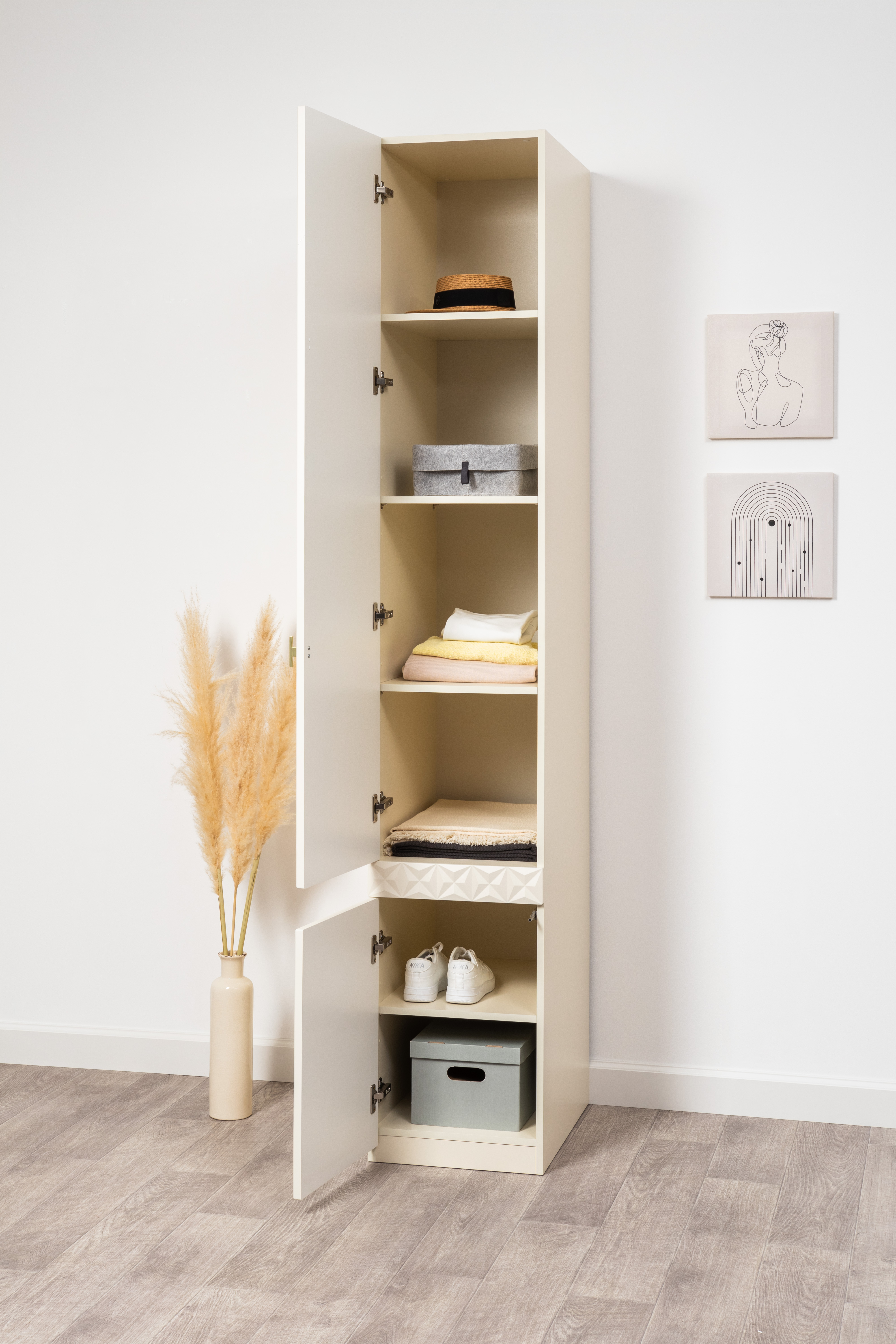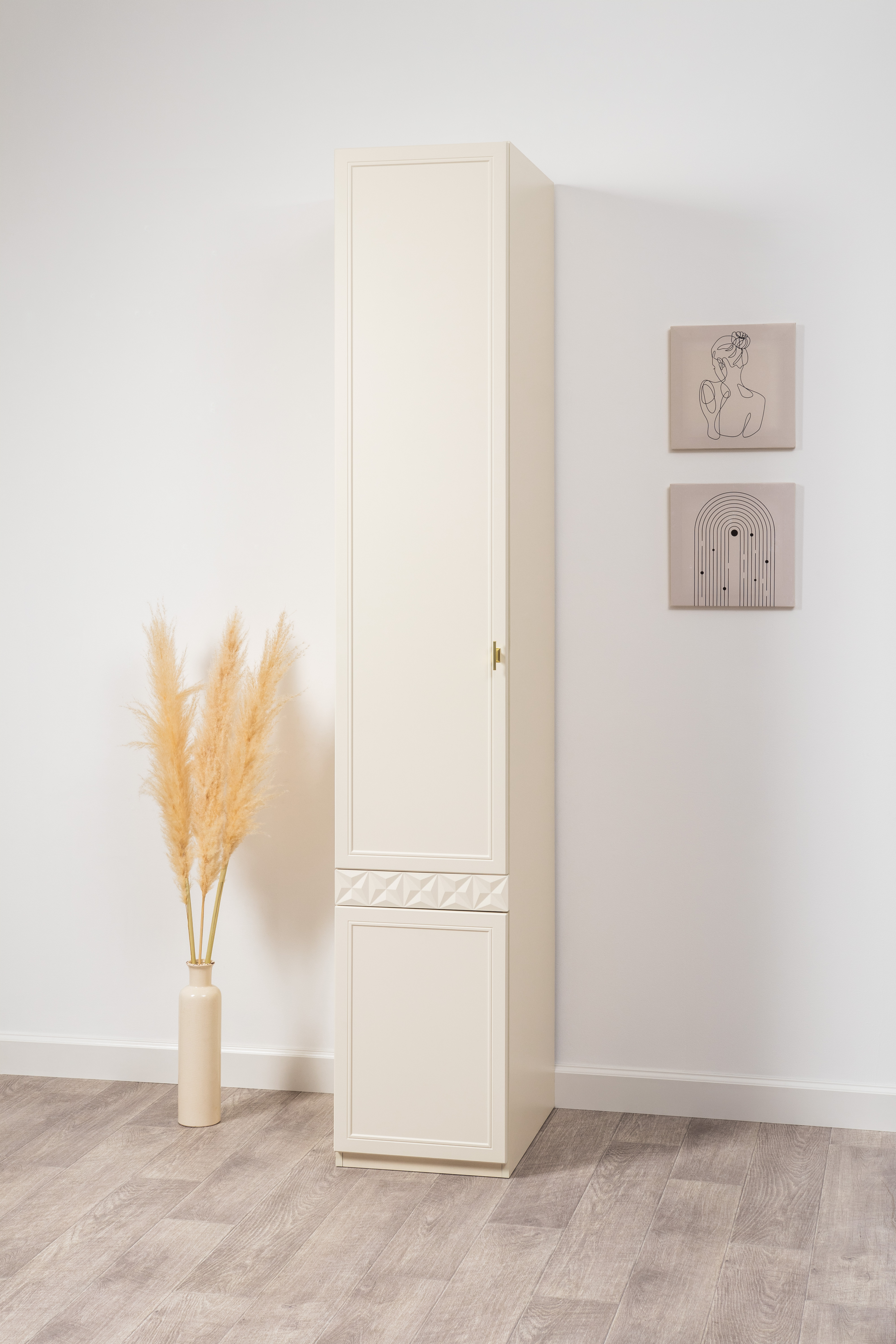 Шкаф-пенал Марион 16.340.01 слоновая кость С341 PE, слоновая кость 6898 ПВХ (собирается на любую сторону)