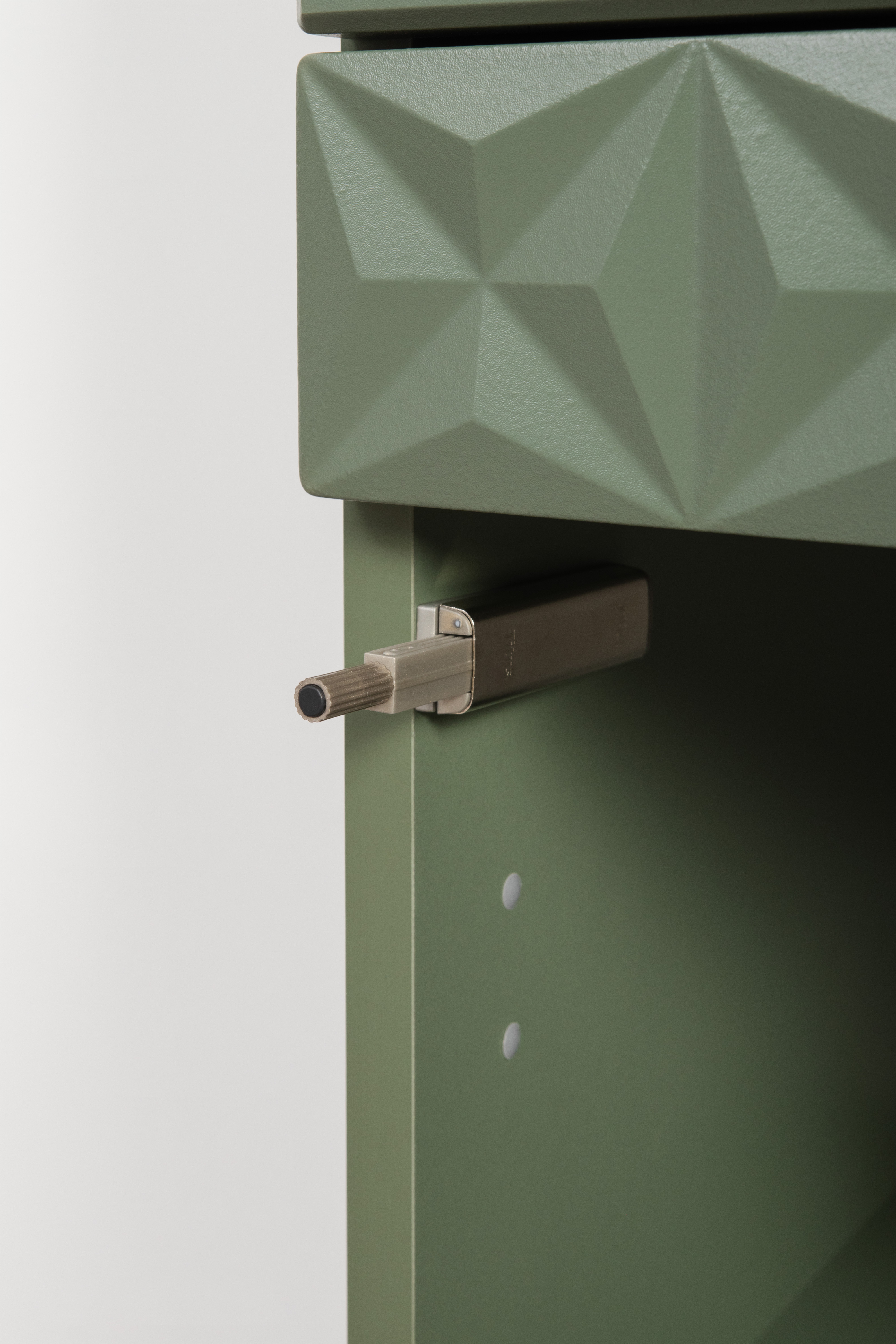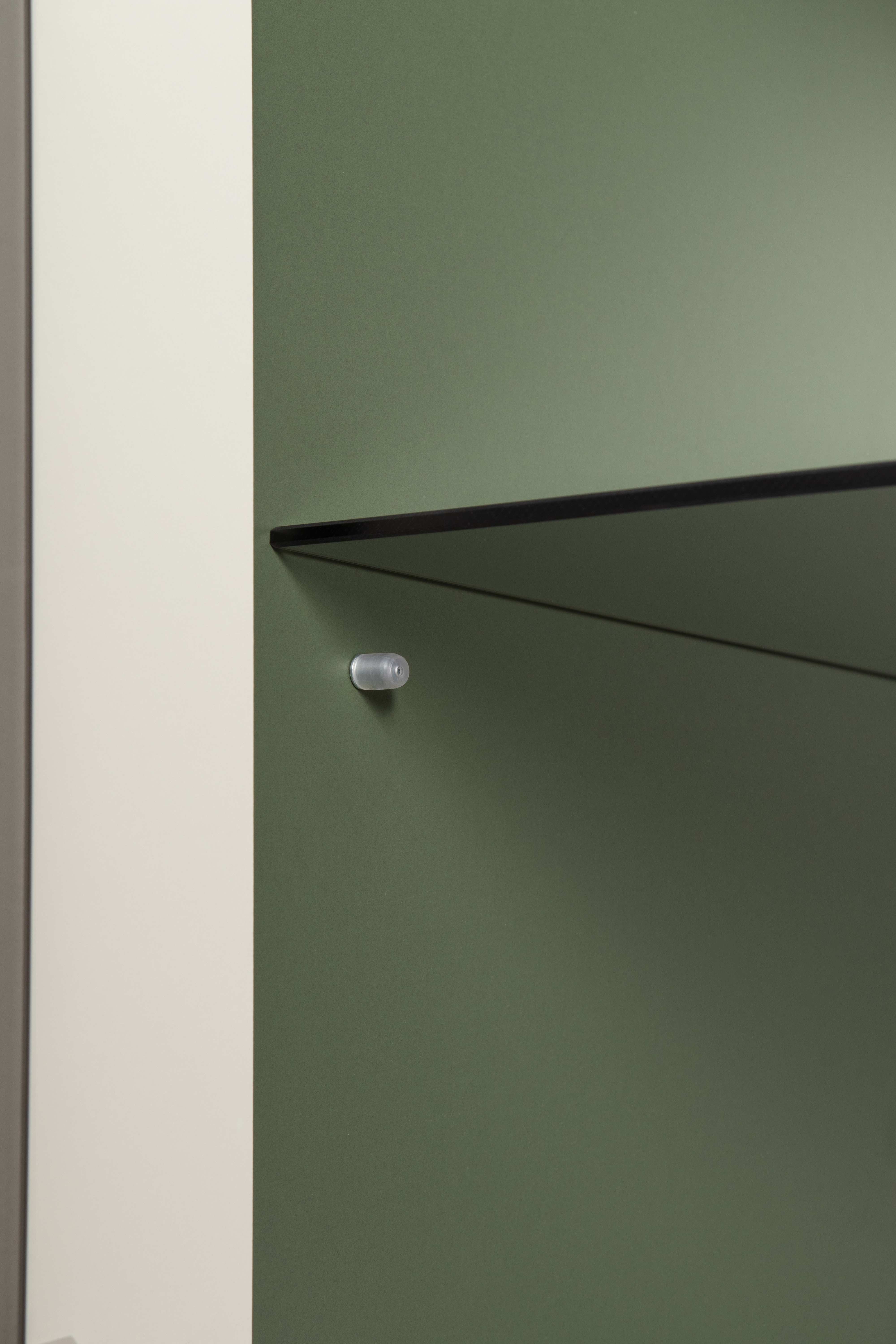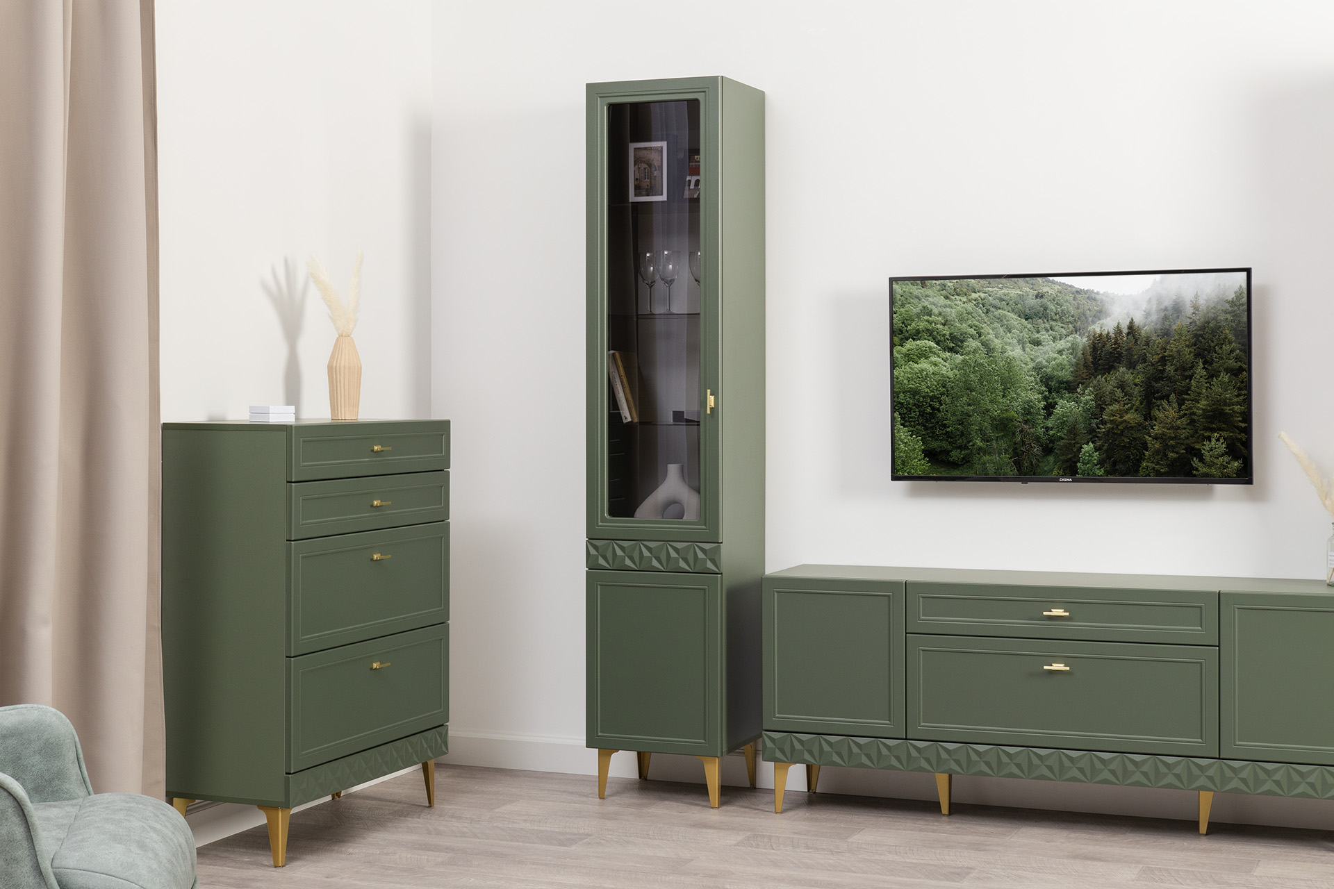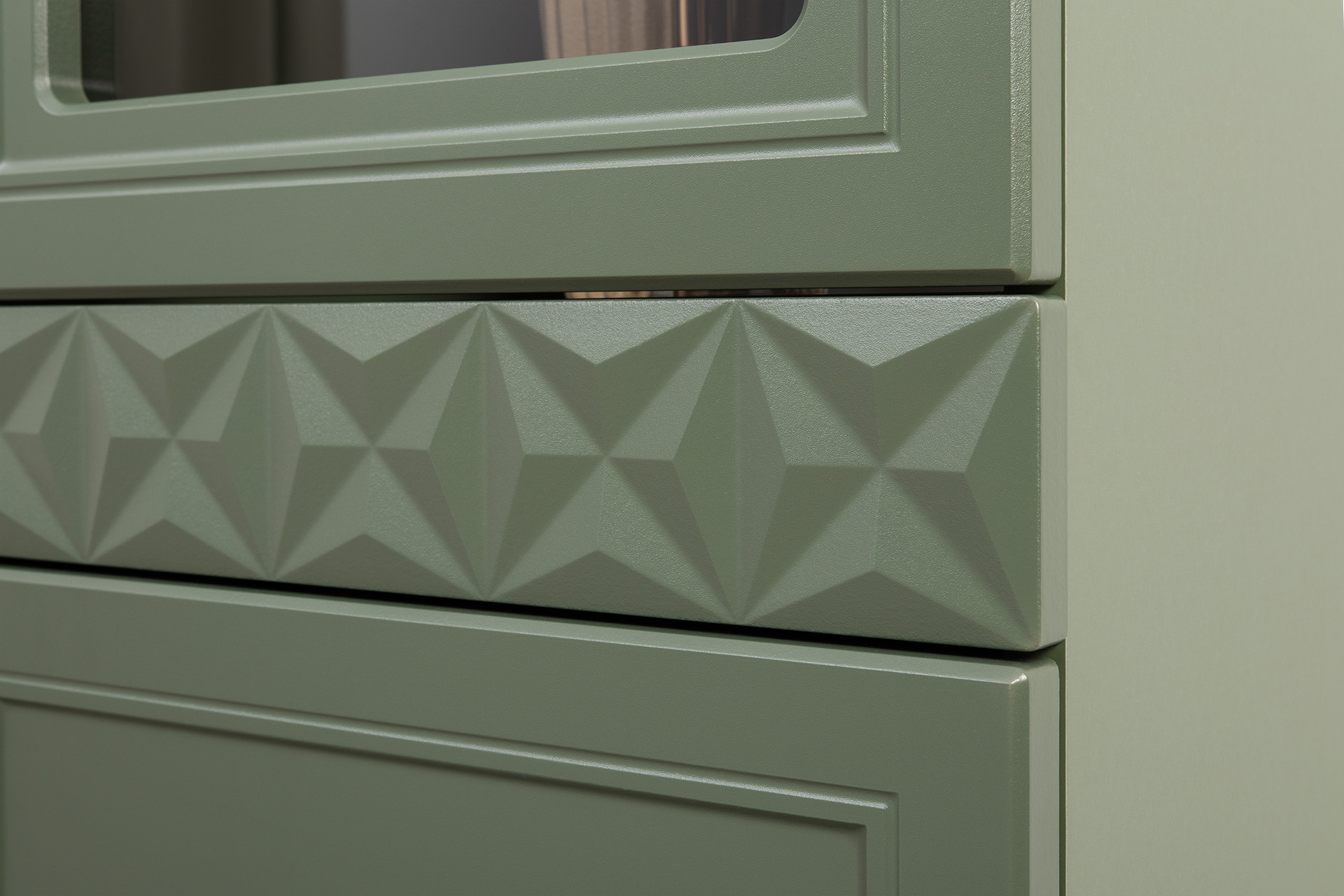 Шкаф-витрина Марион 16.397.01 дымчатый зеленый K521, олива шагрень AG 1050 ПВХ (собирается на любую сторону)