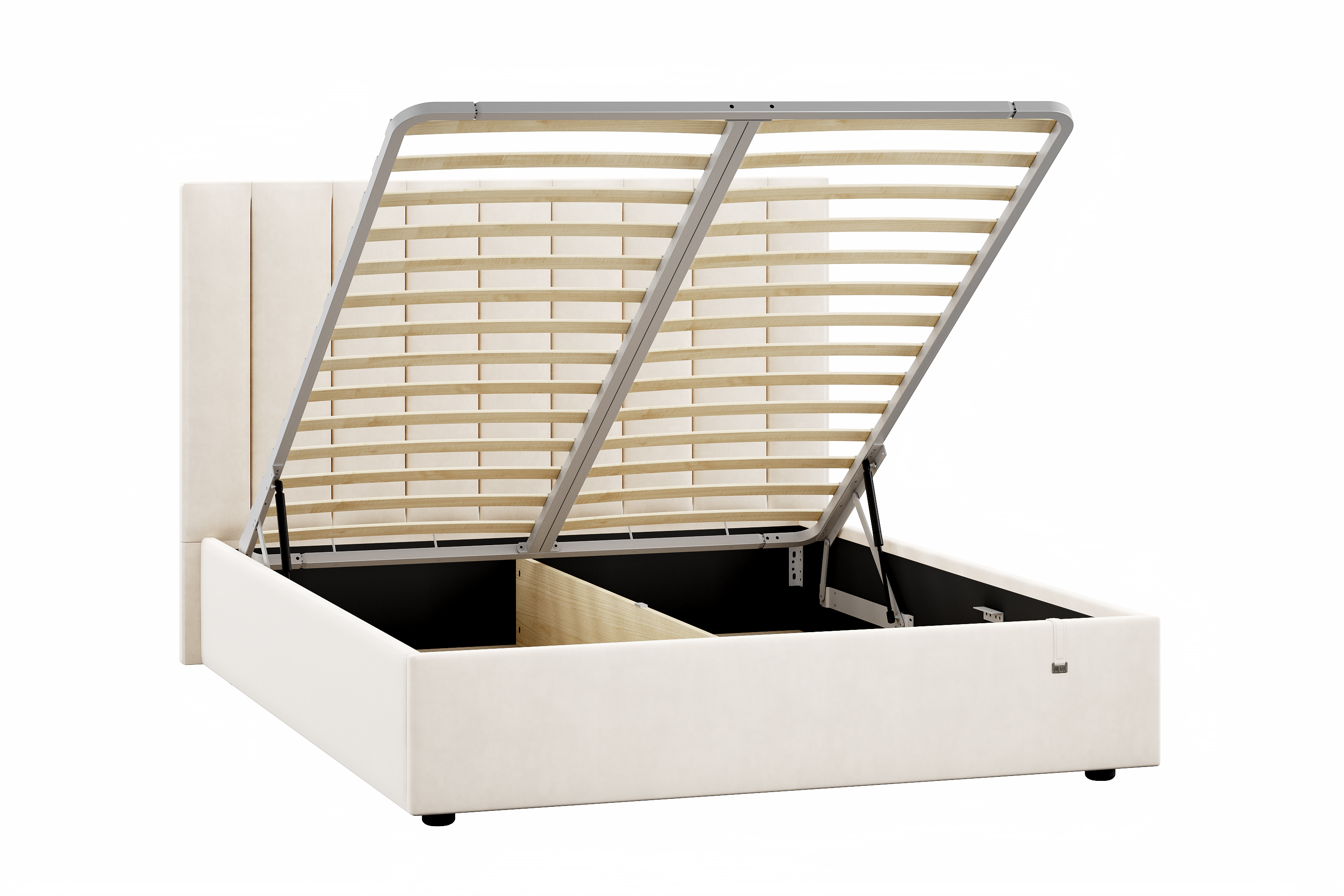 Подъемный механизм легок в управлении, а вместительный короб внутри кровати подойдет для хранения подушек, белья и других вещей. Мягкие тканевые ручки облегчают процесс подъема основания. С кроватями можно приобрести комод и тумбу Эстер. Ткань обивки возможно выбрать в цвет с кроватью из представленных вариантов велюра.