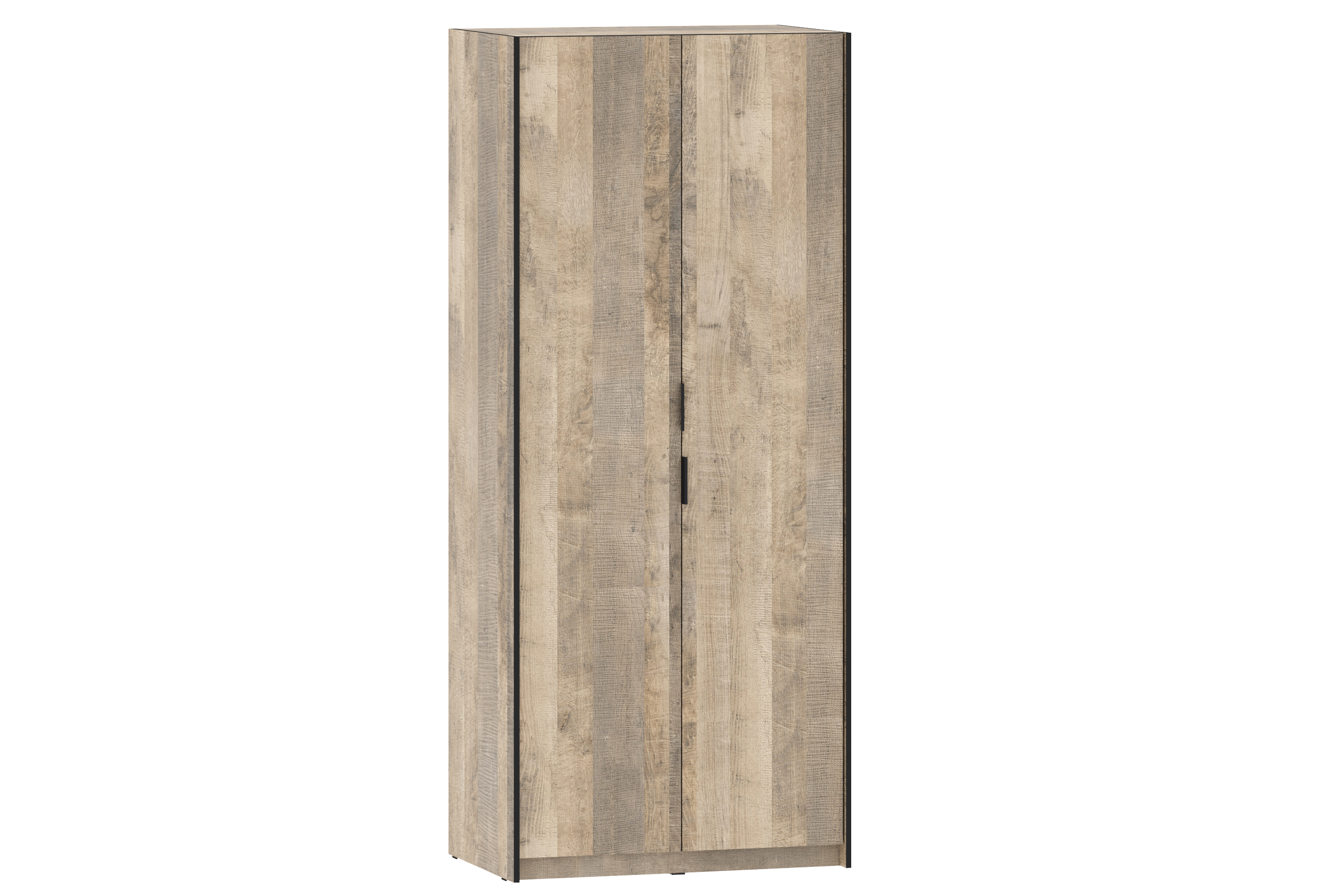 НМ 014.03 Шкаф для одежды. Габаритные размеры (ШхГхВ): 93,2 х 59 х 220,4. Предназначен для хранения одежды, навешанной на плечики, а также в сложенном состоянии на его внутренних полках. Представляет собой каркас из панелей ЛДСП со стяжной горизонтальной панелью. В отделении за двумя распашными дверями полка для одежды и овальная штанга. Шкаф может комплектоваться как двумя дверями ЛДСП, так и сочетанием одной дверью ЛДСП и одной дверью ЛДСП с наклеенным зеркалом. Изделие стандартной сборки. Фурнитура: - Опора наконечник черный, - Петля вкладная 90 с доводчиком Boyard (H302C02/2410), - Ручка СА-1 96 Алди черный. В качестве крепежа используются шканты и эксцентриковые стяжки. Все видимые отверстия закрываются заглушками в цвет корпуса. Шкаф укомплектован двумя уголками Овербаланс для крепления к стене и двумя межсекционными стяжками для соединения в композицию.