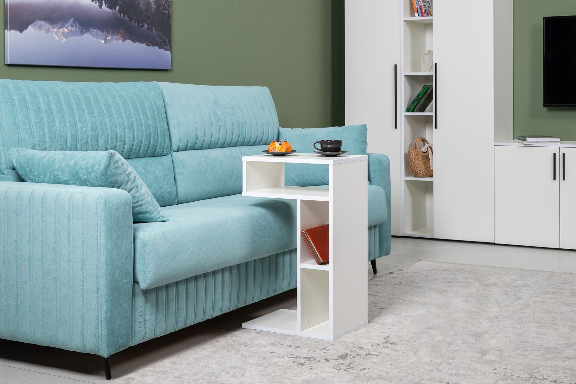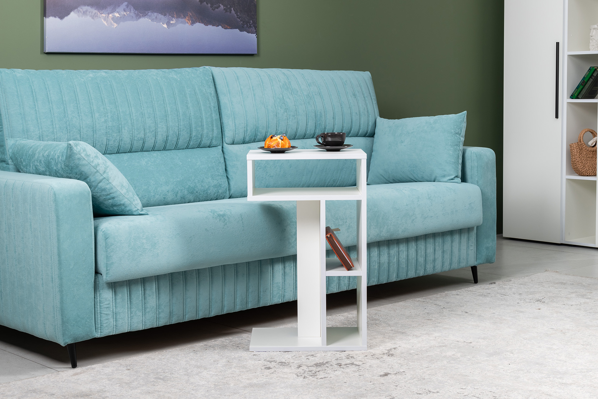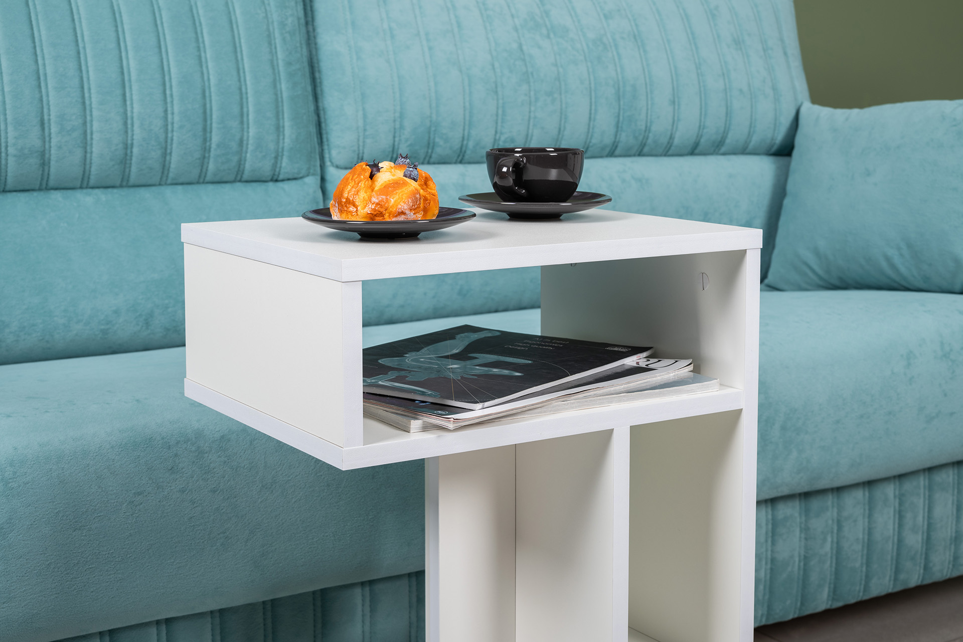 Стол журнальный, подставка Эйр 12.114 белый РЕ шагрень, вертикальная и горизонтальная установка