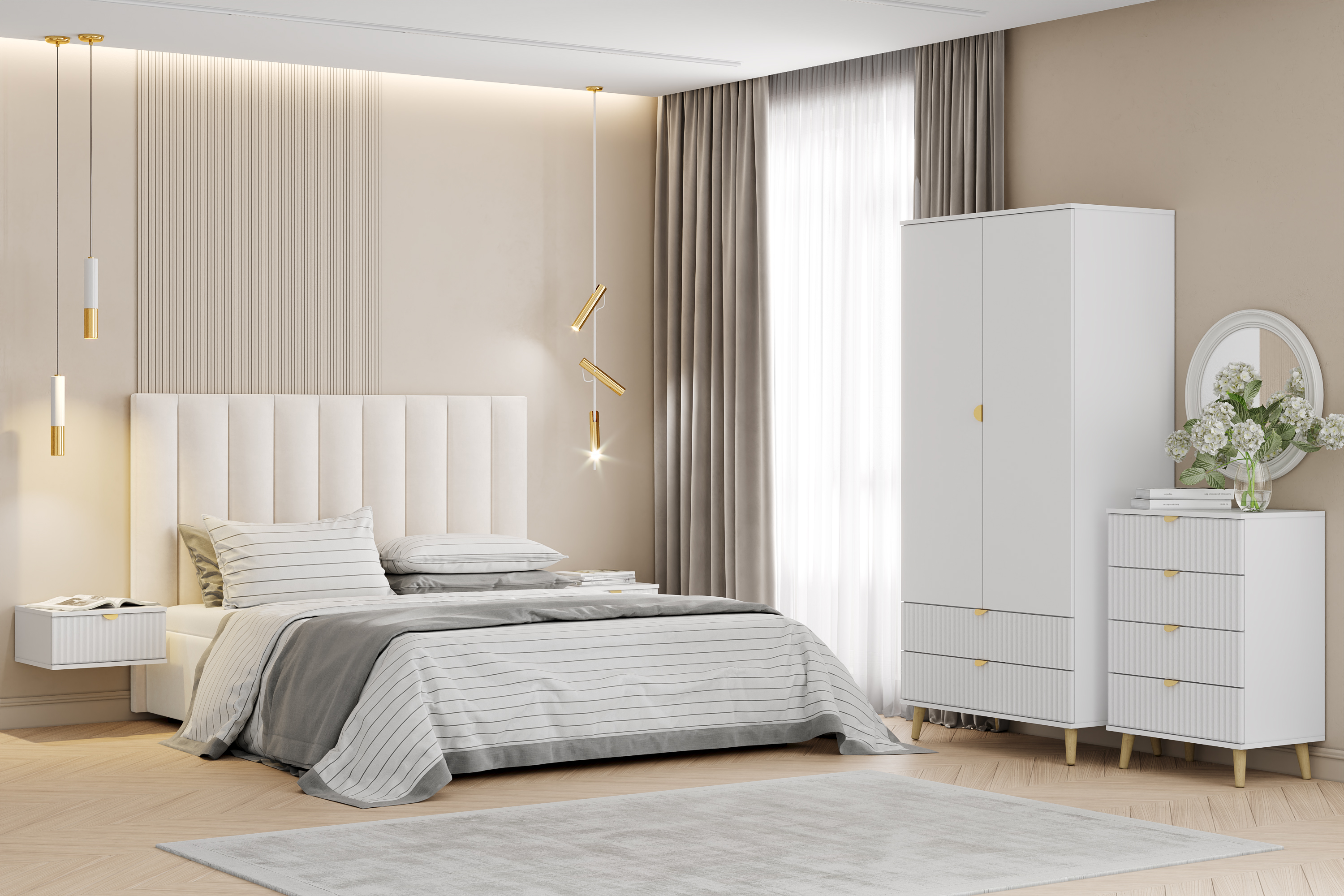 Тумба под ТВ в гостиную Петра 13.281 белый PE шагрень, милк софт ПВХ, бетон чикаго беж ПВХ