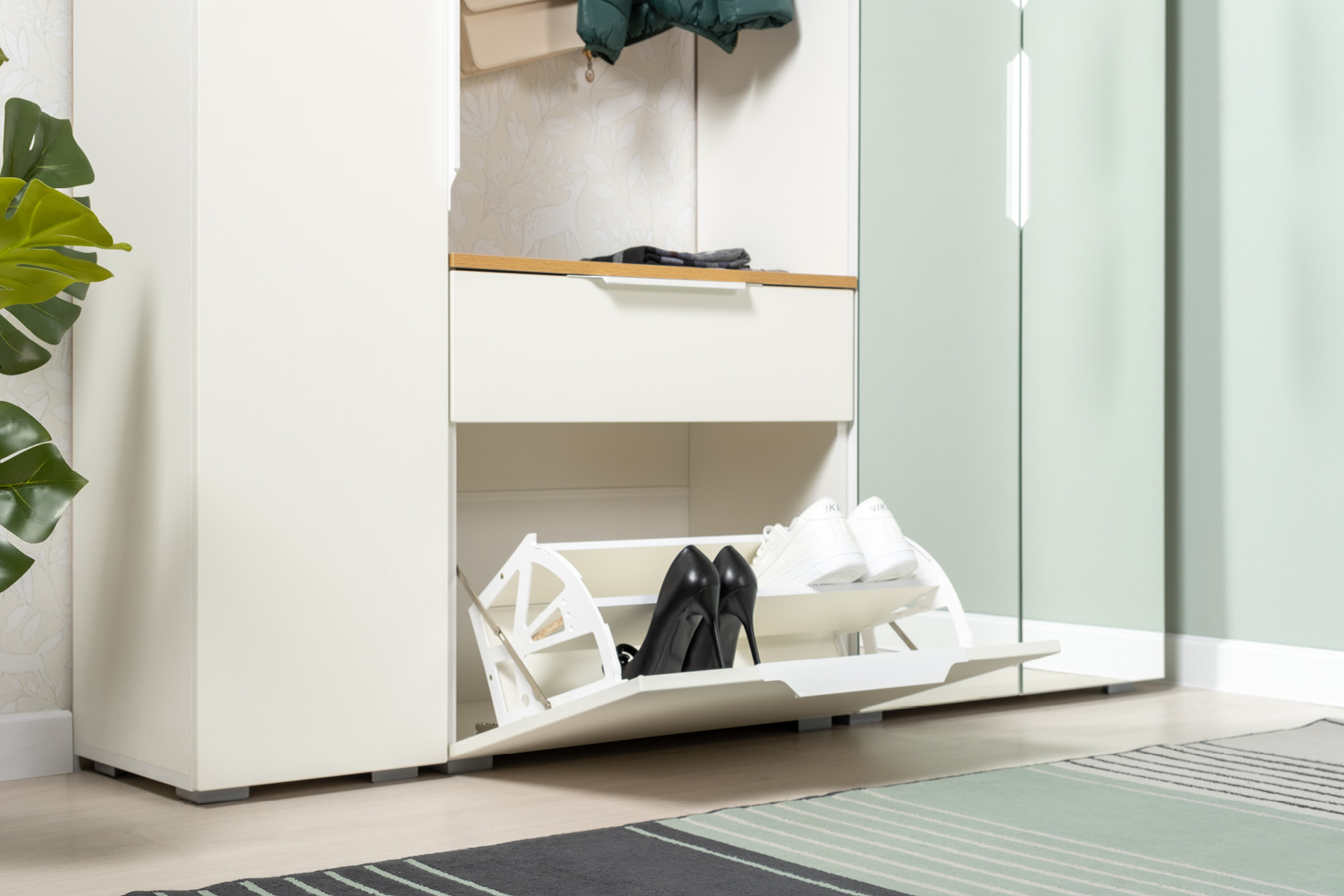 Тумба для обуви Октава 16.127 (обувница) белый PE шагрень, дуб золотой CRAFT, белая шагрень 4101 ПВХ