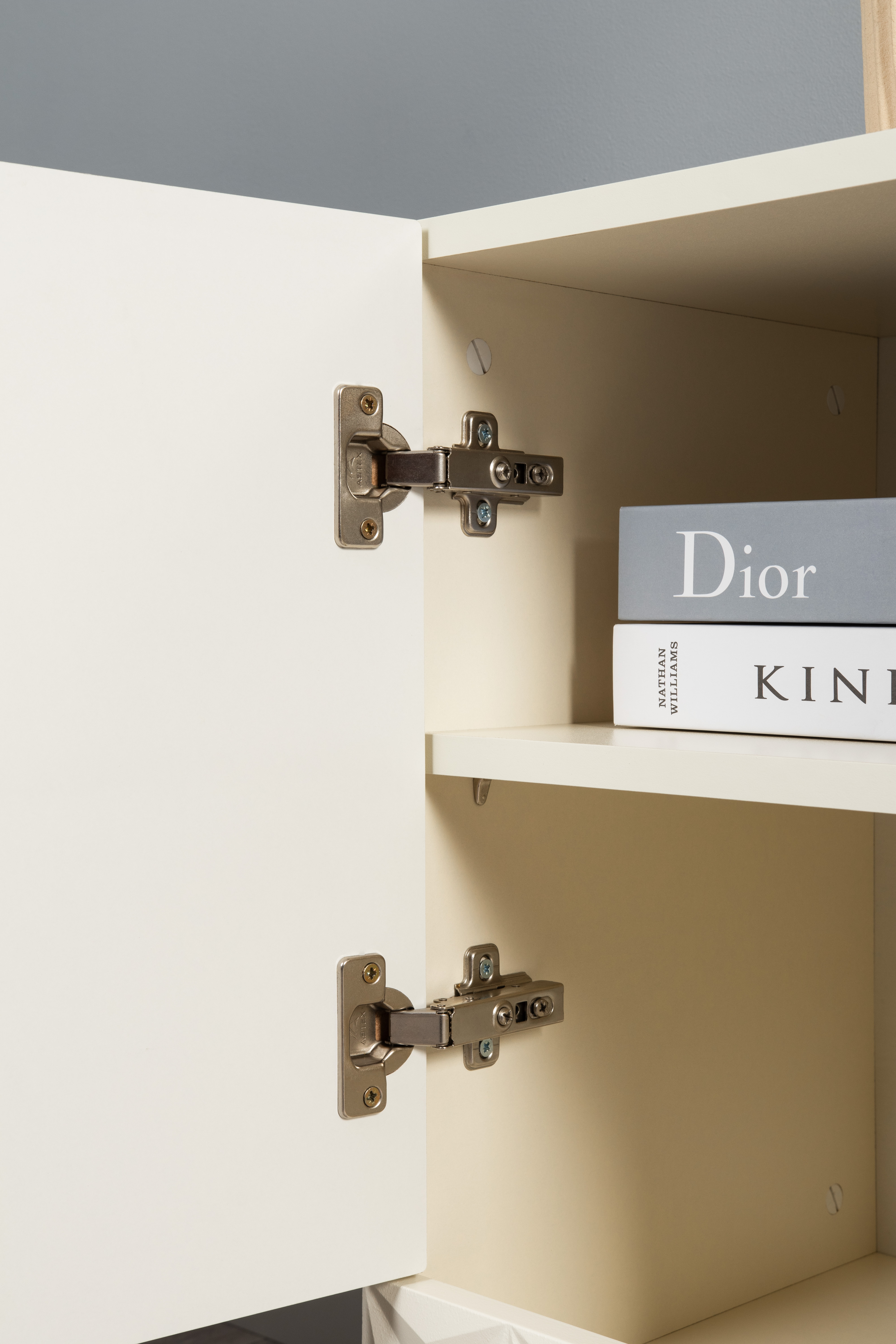 Изящные линии, глубокая фрезеровка фасадов из МДФ и благородные оттенки. Утончённая «Слоновая кость» и изысканная «Олива Шагрень» с глубоким зелёным тоном — создают атмосферу уюта, тепла и благородства. Металлические ручки и опоры золотого цвета придают мебели утончённый блеск, а петли и направляющие с доводчиками обеспечивают плавное и бесшумное закрытие фасадов.