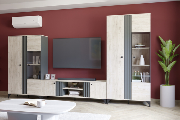 Тумба под ТВ в гостиную Вайс 13.270.01 дуб золотой CRAFT, милк софт ПВХ, темно-серый