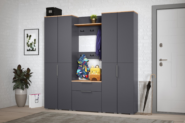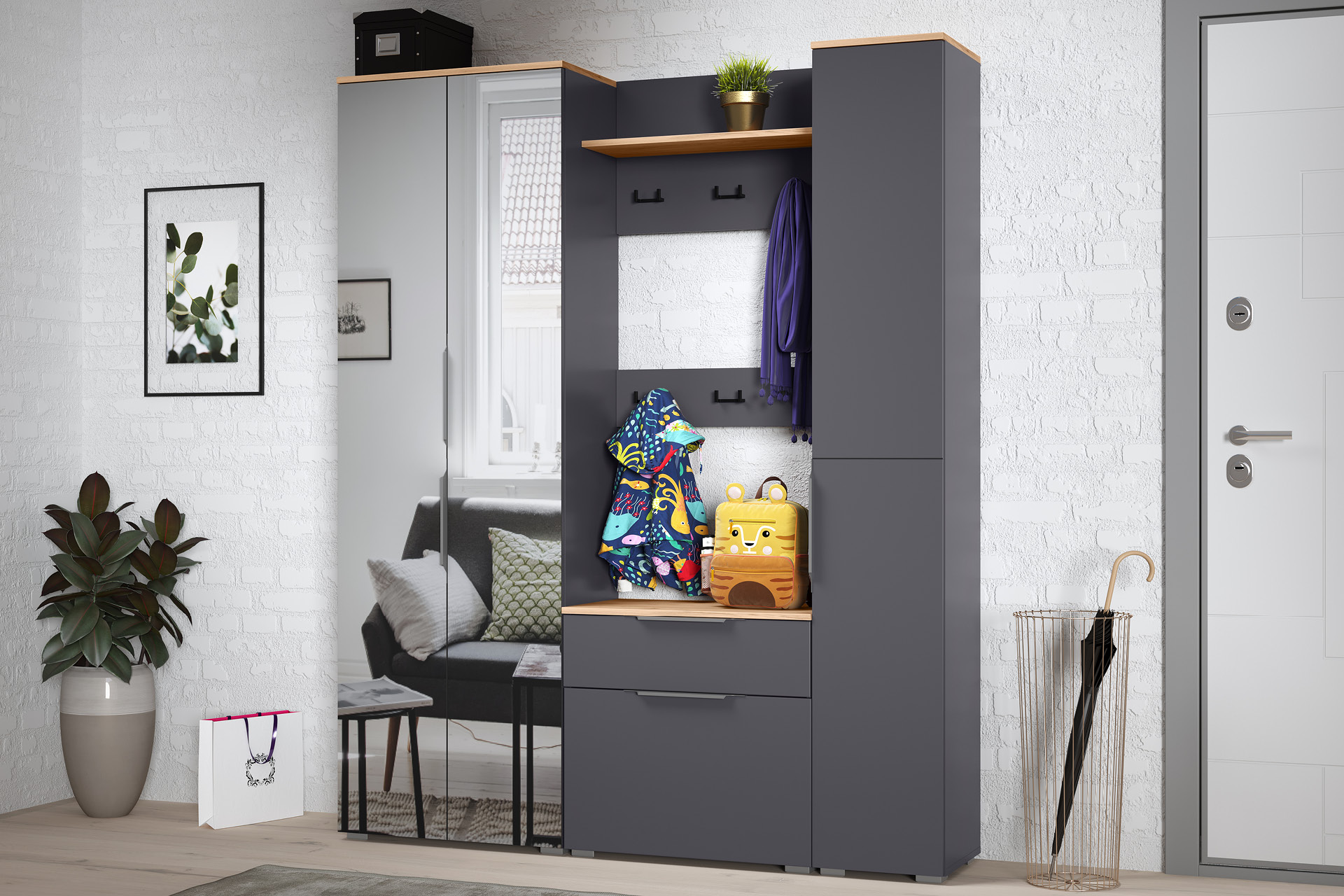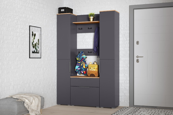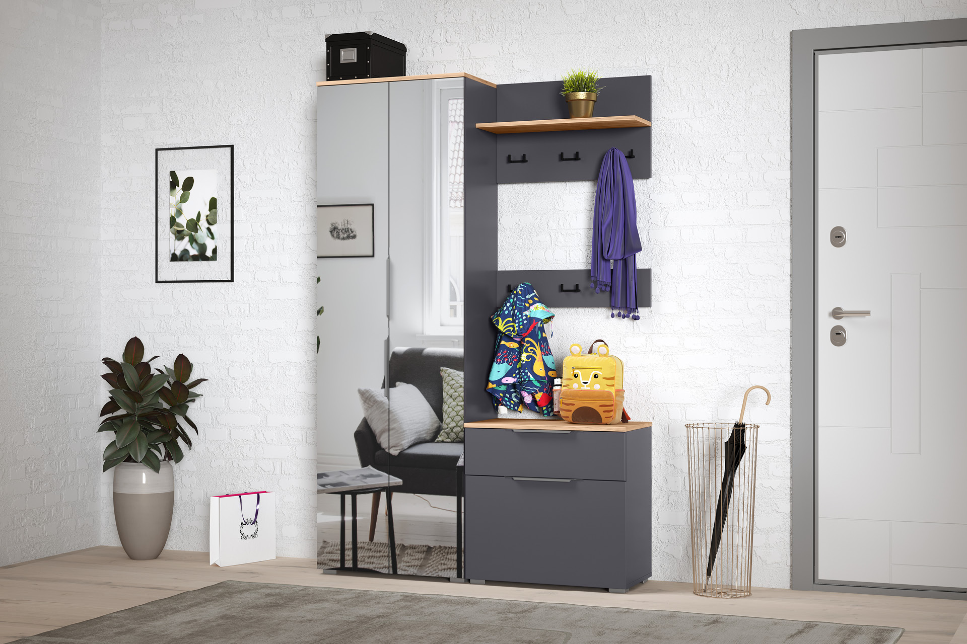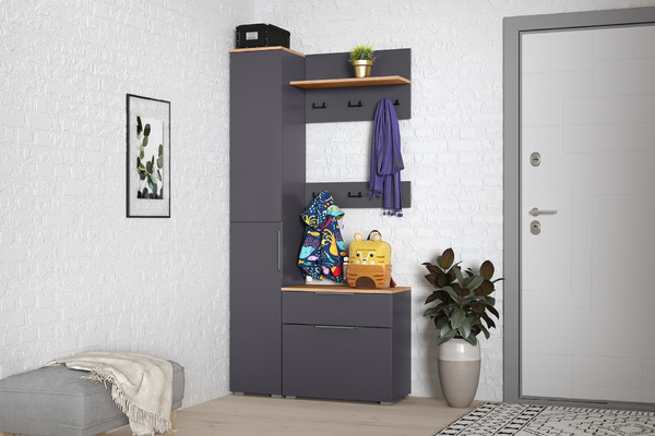 Вешалка навесная в прихожую Юнона дуб белый CRAFT, серый шифер